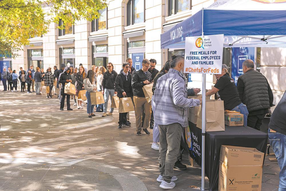 在美国首都华盛顿,联邦雇员排队领取免费食物。新华社记者胡友松摄