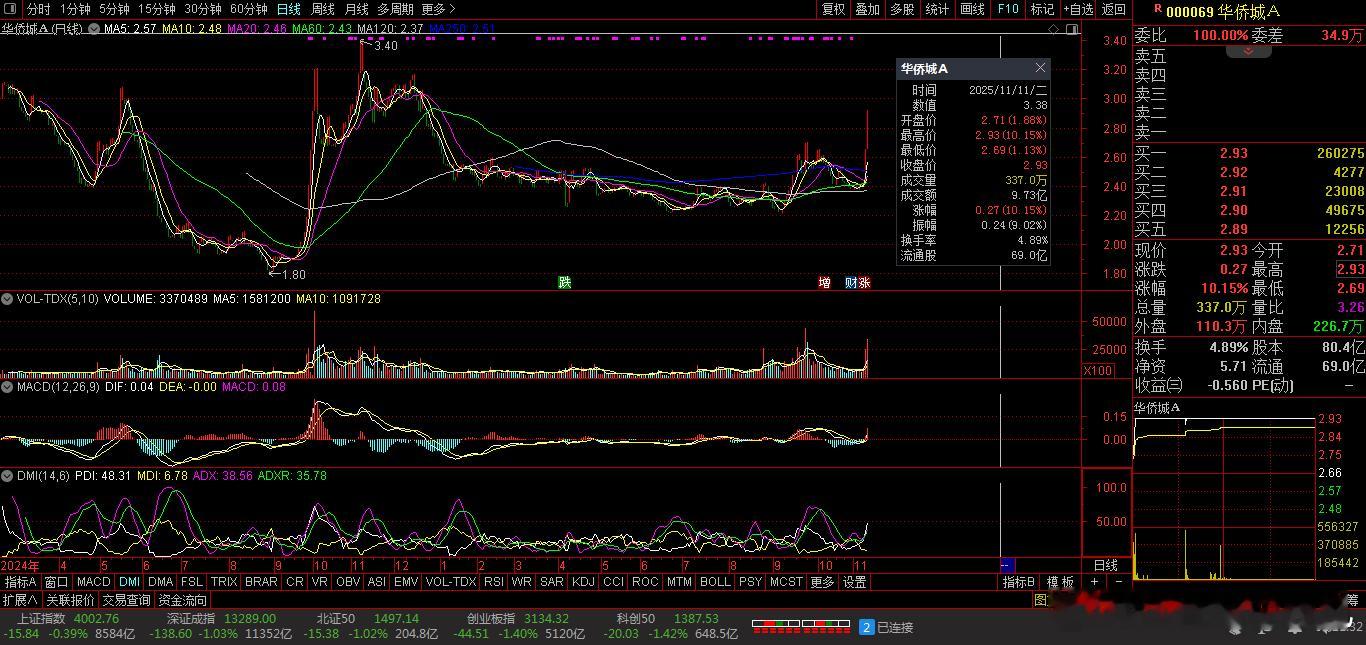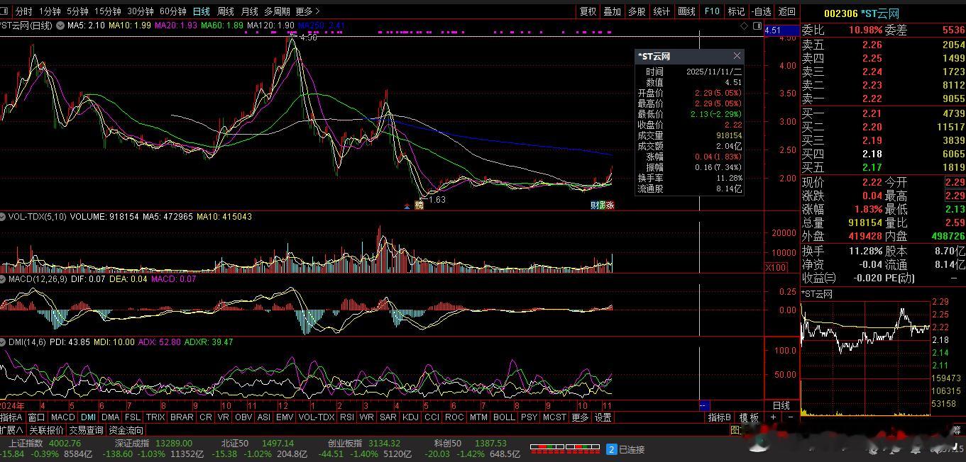 【财富晚茶】三元股市收评:沪指跌0.39%:林业探底回升煤炭杀跌导语:作者系《网易号》优质财经领域创作者。曾经原创作者和知名网易号旅游领域创作者。大跨度行业等的写作,颇受网友喜爱。作品发表于2025.11.11.15:18优雅端庄晚风。(标题照片:全球著名:比亚沃维耶扎原始森林。区域:波兰/白俄罗斯)一、*ST云网:九年筑底主旋律:002306 *ST云网 盘中 03涨1、九年筑底:箱底突破今日视野:前期双底:震荡反弹。2025-11-11截止15:00:收盘股价:2.22元,上涨:1.83%。成交总量:918154手。成交金额:2.04亿元。总换手率:11.28%。总市值达:18.07元,流通市值:18.07亿元。2、餐饮团膳:上市第一主营业务:餐饮团膳-互联网游戏运营研产和销售。公司品牌:中国第一家国内A股上市民营餐饮企业集团。3、营收优良:净利减亏数据显示:2025-09-30 半年度报:营业总收:2.0055亿 同比增79.99%。实现净利润-2015.6779万 同比增47.76%。二、多空搏杀:沪深绿盘1、追踪盘面:蛛丝马迹。沪深场景:早盘:高开八跌,一涨四跌。午盘:二涨二跌,四涨二跌。尾盘:探底一涨,次低绿盘。看点之一:沪深股指:股指高开:盘中弱势。震荡下探:沪指险守:关口4000点。看点之二:两只乌鸦:深创二指:大跌超1%。看点之三:沪深北市:合计成交:20141亿元。场内个股:2785股飘红。2、板块涨跌:风口依然涨跌观察:板块见证。板块拉升:林业、食品饮料、零售、地产、农业、医药等。板块走低:煤炭、保险、券商、半导体等。概念活跃:培育钻石、钙钛矿电池、锂电池等。3、技术看盘:涨跌位置观K线提示:精彩多空博弈。沪深两指预测:11月12日:沪指突破阻力:04024点看涨,前程似锦;跌破支撑位:03991点看跌,日暮途穷。深指突破阻力:13493点看涨,鹏程万里;跌破支撑位:13271点看跌,不堪造就。三、三元板块:风口潜水1、追踪盘面:视角视野三元强势凸显,沪深强势震荡。103股上涨,涨幅5%以上:7股涨停板。19股下跌,跌幅5%以上:2股跌停板。涨幅0%:7股0停板。涨幅0.00%+上涨个股:7+103=110股票赚钱。沪深两市:合计成交20141亿元。总体归纳:三元股票:盘口强势。2、追踪盘面:主力进退换位思考:沪深强势,尾盘吸筹。沪指距9:31-15:00:前1小时放量盘跌,中2小时略量盘跌,1小时略量盘升。深指距9:31-15:00:前1小时放量盘跌,中1小时略量盘升,后2小时略量盘跌。沪深两市:合计成交:20141亿元。四、透析个股:聚焦涨跌1、涨幅榜眼:处排查摸主旋律:涨幅榜之中:寻找启动000069 华侨城A 002506 协鑫集成 002305 *ST南置涨幅榜-1:000069 华侨城A主营业务:旅游-房地产。公司品牌:世界旅游-房地产行业先行者和一流企业。涨幅榜-2:002506 协鑫集成主营业务:太阳能材料设备发电安装系统-新能源发电设备-分布式电源及其配套产品等。公司品牌:全球领先的绿色能源系统集成商。涨幅榜-3:002305 *ST南置主营业务:商业地产-物业开发-资源整合。公司品牌:国内领先城市运营服务商和头部企业。2、跌幅榜眼:处排查摸主旋律:跌幅榜之中:寻找金子600370 三房巷 300237 ST美晨 300301 *ST长方跌幅榜-1:600370 三房巷主营业务:瓶级聚酯切片-PTA-PBT工程塑料-热电等产销。公司品牌:功能性 r-PET 瓶片头部企业。跌幅榜-2:300237 ST美晨主营业务:橡胶非轮胎-园林绿化业务。公司品牌:国内外非轮胎橡胶制品重要综供商和头部企业。跌幅榜-3:300301 *ST长方主营业务:LED照明光源器件。公司品牌:LED照明光源器件头部企业。3、潜力榜眼:处排查摸主旋律:潜力榜之中:寻找估值002496 *ST辉丰 300301 *ST长方 000669 ST金鸿潜力榜-1:002496 *ST辉丰主营业务:生物农资-农资电商-石化仓储供应链-项目投资。公司品牌:中国领先亚临界小分子高温裂解工艺高科技专利产品和头部企业。潜力榜-2:300301 *ST长方主营业务:LED照明光源器件。公司品牌:LED照明光源器件头部企业。潜力榜-3:000669 ST金鸿主营业务:天然气。公司品牌:国内最具实力的综合性清洁能源服务商。五、本创作者:优质网易投资投机迷茫之中:给予尽可能有帮助:资本市场风险自负。(优雅端庄晚风《网易号》优质财经领域创作者和原创作者; 违者必究)