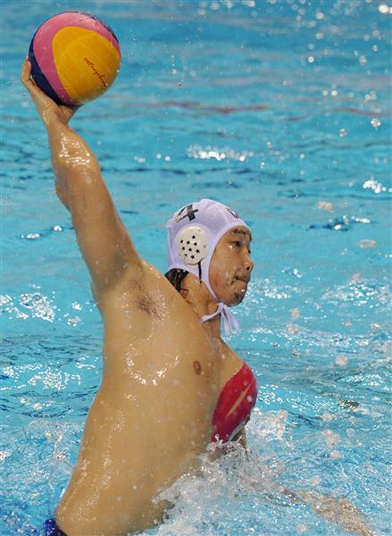 2010年11月24日,中国队球员余利君在比赛中。当日,在第16届亚运会水球男子半决赛中,中国队以22比9战胜韩国队,闯入决赛。新华社记者吕小炜摄