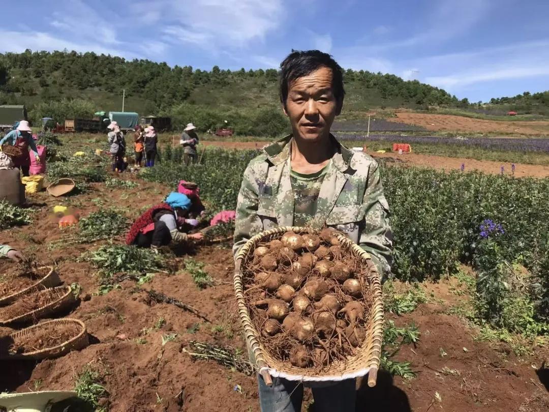 大理州鹤庆附子花在风中绽放,药香里的桃源绮梦 (图/罗春芳 文/张树忠) 于大理白族自治州的山川锦绣间,鹤庆县西山晒锁仿若遗世独立的明珠,在幽谧深山里散发着令人心醉的灵韵之光。时光回溯至清代,“晒锁当归最乎”的佳话便如一首古老歌谣,在西山的岁月深处悠悠传唱,那是历史对这片土地中药材品质的深情颂赞,历经悠悠岁月,仍余韵悠长。 当我们怀着对自然的敬畏与对生活的期许,踏入鹤庆西山,一幅绝美的画卷如诗般在眼前铺陈开来。看呐,那淡紫色的附子花,宛如误入人间的精灵,轻盈地栖于枝头。微风徐来,花朵似灵动的仙子翩翩起舞,每一次摇曳,都似在倾诉着这片土地的前世今生,那是岁月沉淀的故事,是时光镌刻的传奇。 田间,药农们宛如大地的舞者,他们的身影在绿意中穿梭。他们的双手带着对土地的深情与对丰收的渴望,熟练地刨出一个个饱满的附子。那绽放于脸上的盈盈笑意,是丰收的欢歌,是生活的乐章,更是对未来无尽的憧憬,如春日暖阳,温暖而明亮。 这片平均海拔3000米的神奇疆域,是大自然匠心独运的杰作,是中药材的“黄金圣地”。它似一座被岁月尘封的宝藏,以高原特色中药材产业为坚韧丝线,编织出一张联农带农的温暖巨网。在这张网下,村民们的生活恰似蓬勃生长的附子,在产业的滋养下,如繁花般绚烂绽放,充满了生机与希望,奏响了一曲致富的欢歌。 鹤庆西山晒锁,拥有着独特的高寒立体气候。白昼,阳光如金色的瀑布,倾洒而下,赋予大地温暖与能量,让中药材在光明中汲取天地精华;夜晚,清凉的空气似温柔的薄纱,轻裹着大地,带来宁静与安详。巨大的昼夜温差,如同神奇的魔法师,精心雕琢着每一味中药材的品质,赋予它们独特的魅力与功效。这里的土壤,肥沃而厚重,宛如母亲的怀抱,深情地孕育着无数生命的奇迹,是中药材生长的天然摇篮。 目光聚焦于马厂、安乐、新峰三村,1400余户农户宛如紧密相连的星辰,汇聚成温暖的星河。其中94%的农户投身于中药材种植的事业,他们用汗水浇灌希望,用双手耕耘梦想。那连绵8000多亩的土地,宛如一幅色彩斑斓的画卷,附子、当归等多种中药材竞相生长,相互依偎,共同勾勒出多品种协同发展的壮丽图景。每年约9000吨的产量,近9000万元的产值,这不仅仅是数字的堆砌,更是村民们心血与智慧的结晶,是这片土地蓬勃发展的生动注脚。 鹤庆西山晒锁,附子花在风中绽放,药香在空气中弥漫,似一首悠扬的旋律,萦绕在这片土地的每一个角落。这里,是中药材的梦幻国度,是村民们的希望乐土,更是一幅用汗水与梦想绘就的壮丽画卷,在岁月长河中熠熠生辉,诉说着人与自然和谐共生、勤劳创造美好生活的动人诗篇。大理白族 鹤庆县白族 草乌附子中毒 附子种球
