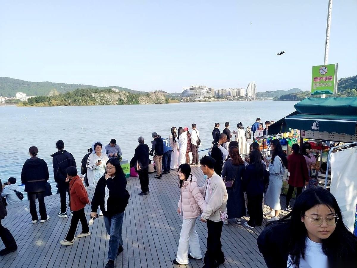 感觉全绵阳的人,今天都挤到三江码头了。 满天都是人扔的面包屑,那群从西伯利亚来的红嘴鸥跟战斗机似的,嗷嗷叫着往下俯冲。好多人把吃的放手心上,就等鸟下来那一瞬间,“咔嚓”一声,年度摄影大片就有了。 那场面,说不清是人看鸟,还是鸟在看一群傻乎乎的人。 旁边的露天茶馆,老板脸都快笑烂了,一座难求。 一杯盖碗茶,一把瓜子儿,对着江面,啥也不想,就这么眯着眼晒太阳。 讲真,这可能就是四川人理解的,顶配的人生了吧。安逸。 想坐个船游江? 乖乖,那队排的,我感觉能从船头排到解放碑。但就有意思,排队的人脸上也没见着烦,都在笑。 其实大家哪儿是来看鸟、看风景的。 我们拼死拼活熬过一周,要的,不就是这股子热气腾腾的人间烟火味儿么。 要的,就是这种“嘿,我还好好活着”的真实感。 就是为了在这样的太阳底下,能把心里那口憋了很久的浊气,痛痛快快地,吐出来。