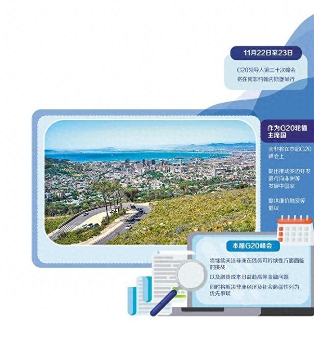 南非及非盟将在本届G20峰会上再次呼吁非洲应从依赖援助转向以投资驱动的增长模式,并强调该模式应建立在非洲自主性和加强全球伙伴关系的基础之上,其中应突出基础设施、能源、人力资本、气候适应性、国内资源动员和机构赋权等领域。