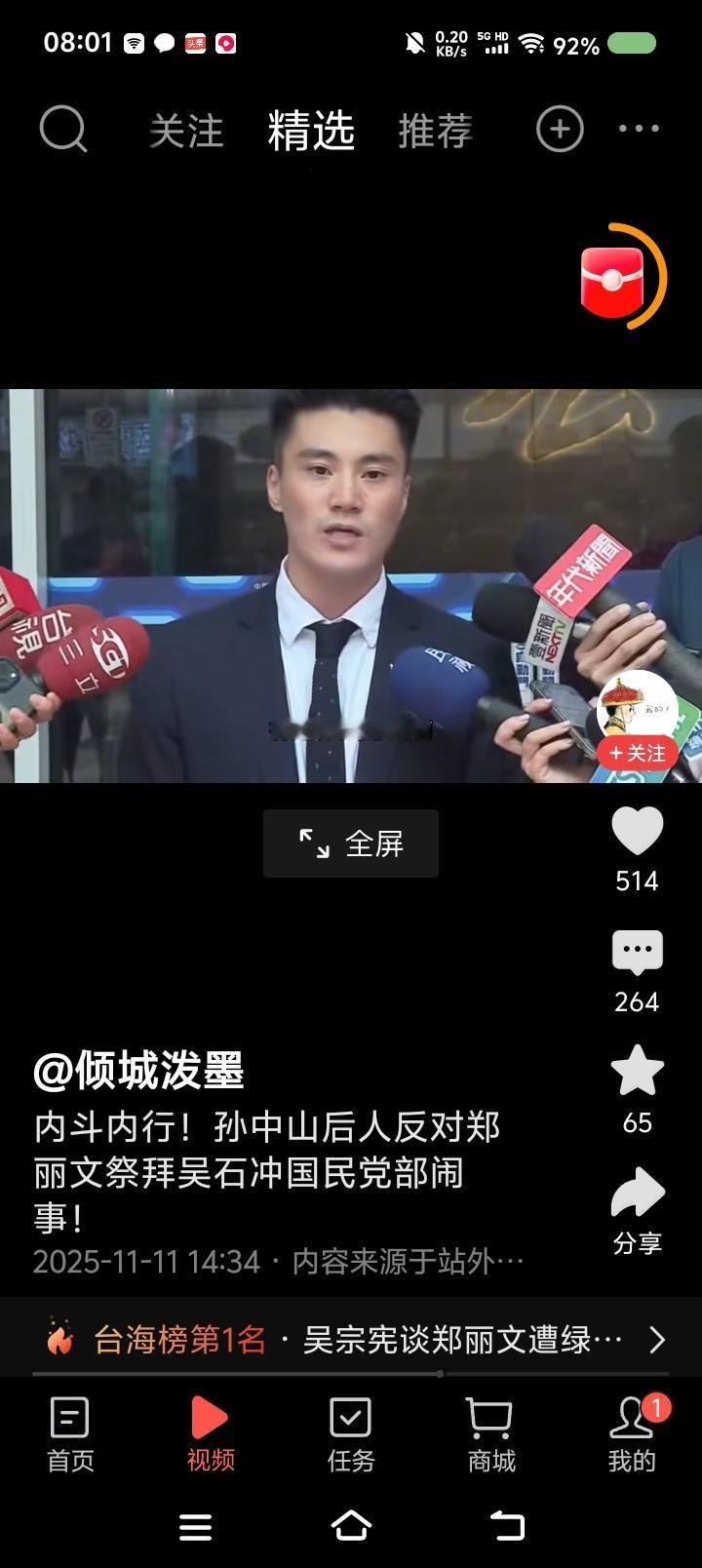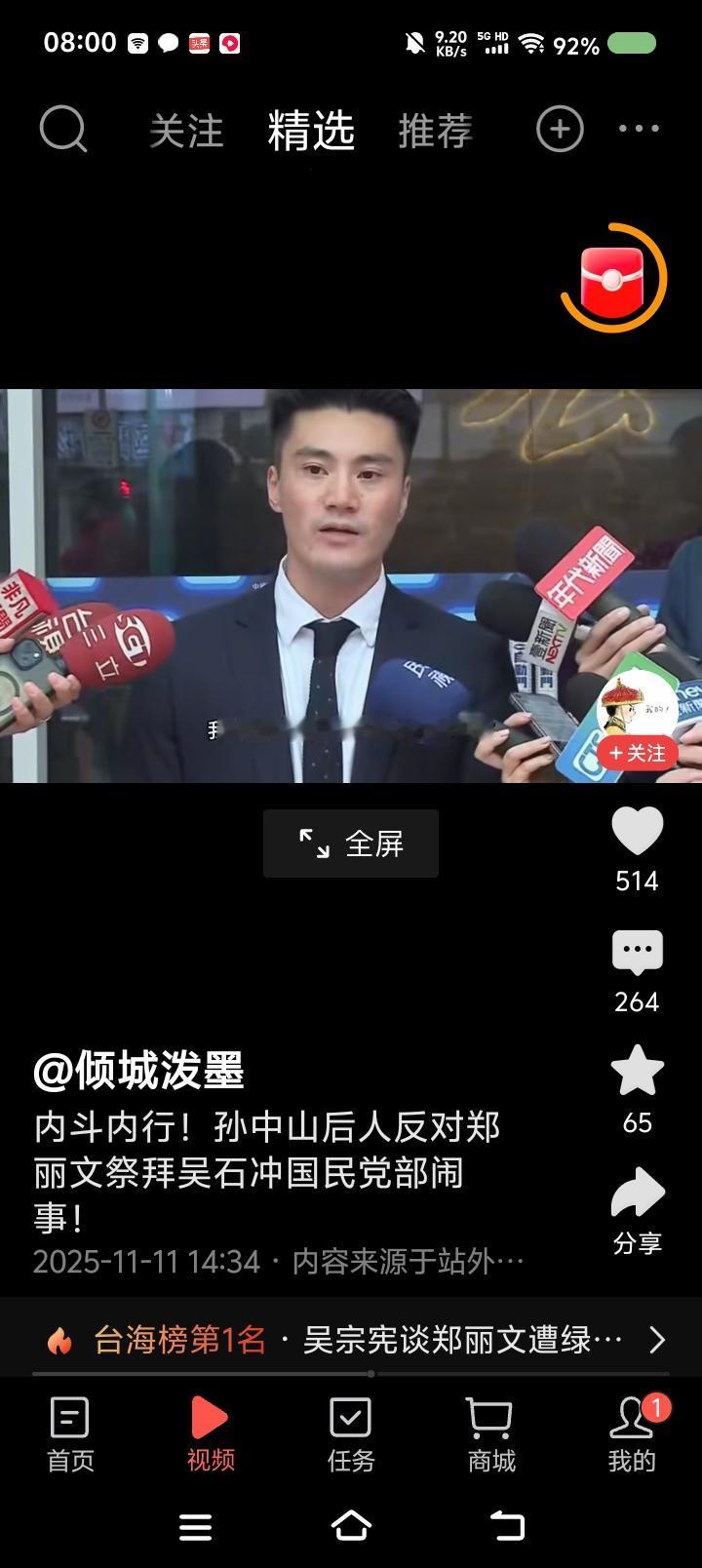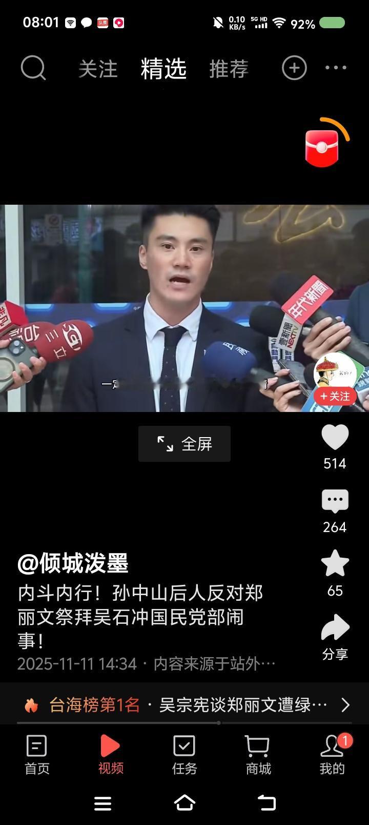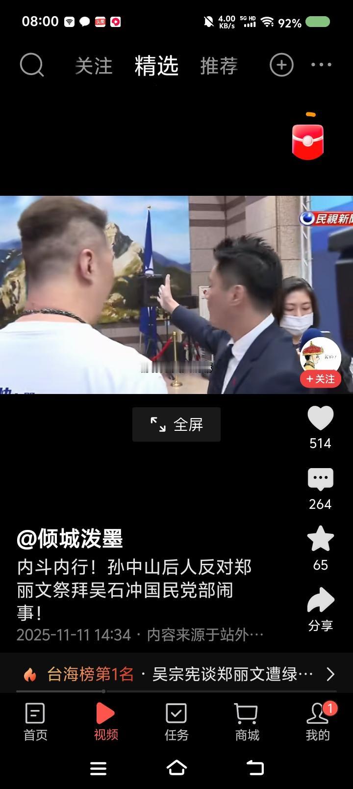 这个人还有脸提孙中山?—— 网上视频:台湾省,有人去国民党党部闹事,抗议郑丽文几天前去马场町纪念公园参加祭拜活动,此人认为郑丽文拜吴石等人对不起孙中山,不利于国民党将来选情。 点评: 一、此人是国民党的吗?立即开除! 二、孙中山如果醒来,首先追究蒋介石;其次清理不孝子孙;接着改革中国国民党,与共产党合作,完成统一大业,彻底实现新三民主义,实现民族复兴。