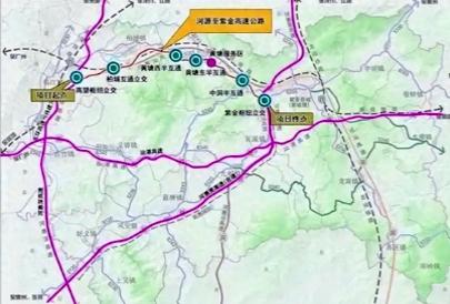 【河源紫金至江东新区高速公路新建工程】已获工可批复,正在开展前期招投标工作,建设周期42个月。项目全长约49千米,估算投资约68亿元,采用双向四车道标准建设,设计时速100千米。起于河源市紫金县紫城镇,对接河惠莞高速公路、安良大道,途经黄塘镇,柏埔镇,止于江东新区临江镇,对接迎客大道。设置桥梁52座20997米,中隧道1座600米,互通立交3座(紫城枢纽,黄塘、柏埔互通),服务区1处,连接线1条2280米(柏埔)。项目的建设有利于完善粤北交通网络布局,串联河惠莞高速、河惠汕高速等,进一步提高路网韧性及服务水平,届时紫金县城到河源市区车程仅需约40分钟,将提升中心城区辐射效应,助力区域资源开发以及经济社会高质量发展。