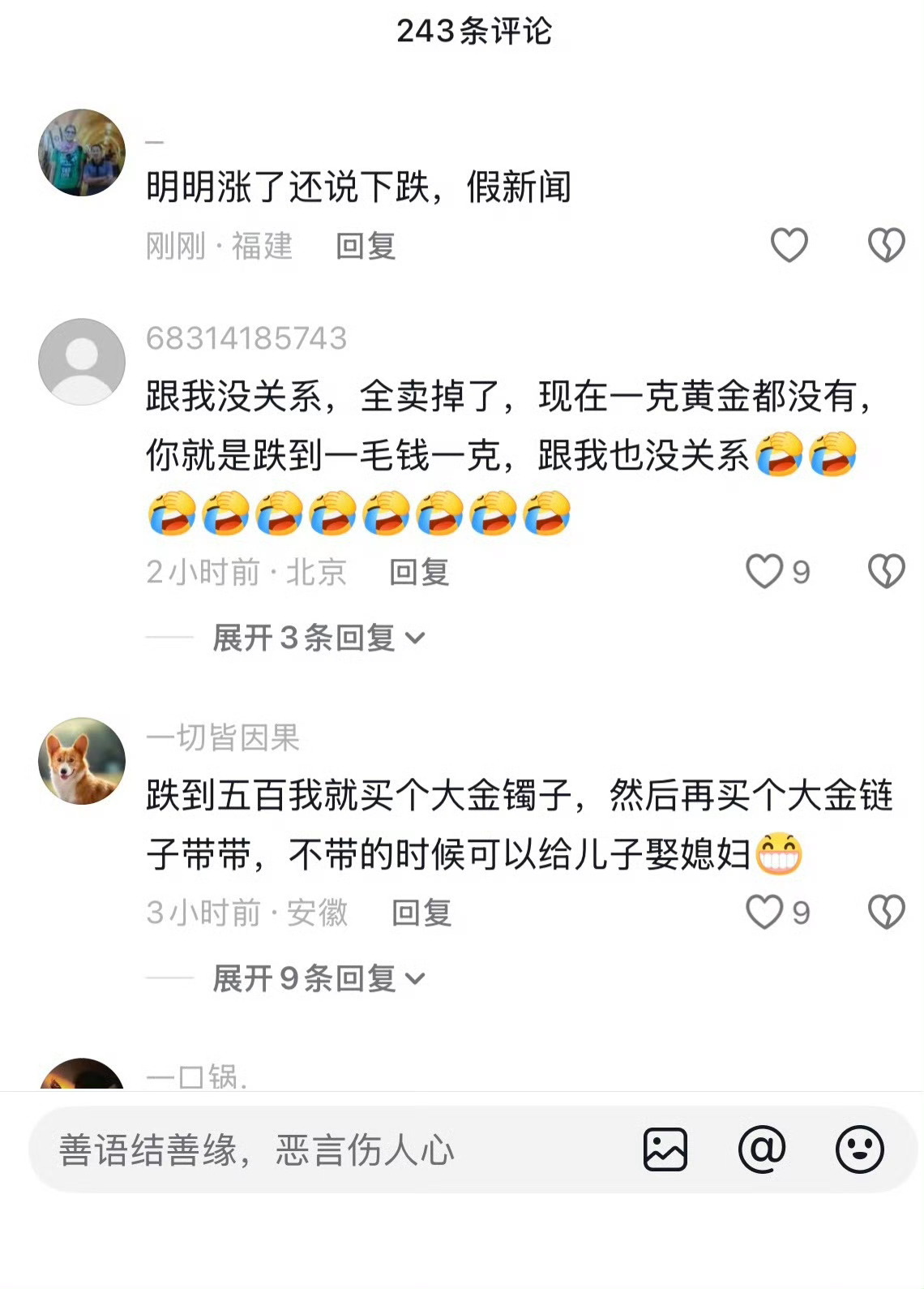 这黄金真的一天一个样金价跌宕,真的是一卖就涨,一买就跌,担心掉900,赶紧出了,结果又回升了,1000有希望,普通人真不能随便参与呀