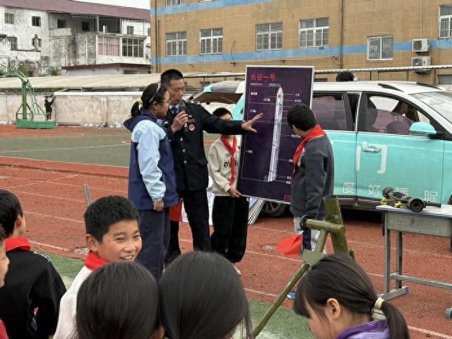 航空航天科普知识互动环节更是热闹非凡。“宇航员在太空怎么喝水?”“导弹的速度有多快?”“飞机是如何起飞的?”学生们争先恐后地举手提问,充满童真又富有想象力的问题层出不穷,展现了他们对太空的无限憧憬。宣传员耐心细致地一一解答,并鼓励大家努力学习科学知识。