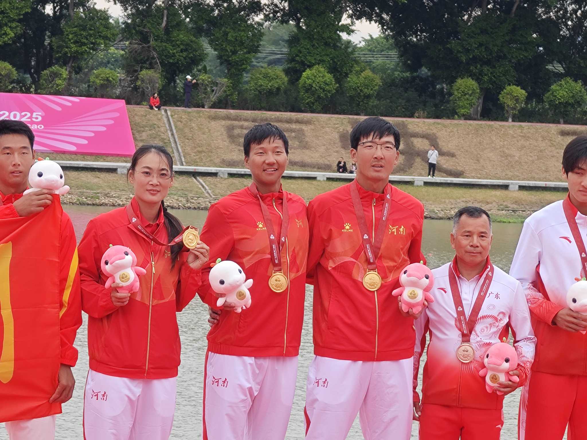 尽管这枚金牌在赛前就有极大的把握,但当梦想成真时,运动员和教练团队依然难掩激动之情。这枚金牌承载着特殊的意义——它不仅是河南代表团在本届全运会的第二枚竞体项目金牌,更标志着河南男子赛艇在非轻量级项目上实现零的突破。自1993年七运会以来,河南男子赛艇再未登上最高领奖台,且此前的金牌仅限于轻量级项目。