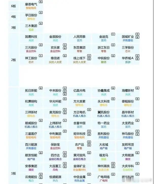 今天热点题材和核心(11.12)1.硅光芯片核心:利扬芯片、新莱应材、硕贝德 、利和兴、神工股份2.锂电池核心:天际股份、华盛锂电,多氟多、孚日股份、国城矿业、永太科技、奥克股份、海科新源3.机器人核心:上纬新材 、方正电机、新特电气、银之杰4.大消费核心:国光连锁、华侨城A、欢乐家、三元股份、中锐股份周2热门题材跟踪1.磷化工核心:澄星股份、清水源2.存储芯片核心:德明利、金波龙、香农芯创3.光伏/硅核心:中来股份、合盛硅业、摩恩电气4.医药核心:昂利康、人民同泰、金迪克、九安5.智能电力高度:西电人气:中能电气,特变弹性:灿能电力6.FJ核心:平潭人气:海峡,合富.福龙马补涨:三木合富尾盘反包板趋势机会和投机机会相互博弈,围绕4000反复争夺,维持量能2万亿,机会还是很多,看自己专注的地方深耕比较好