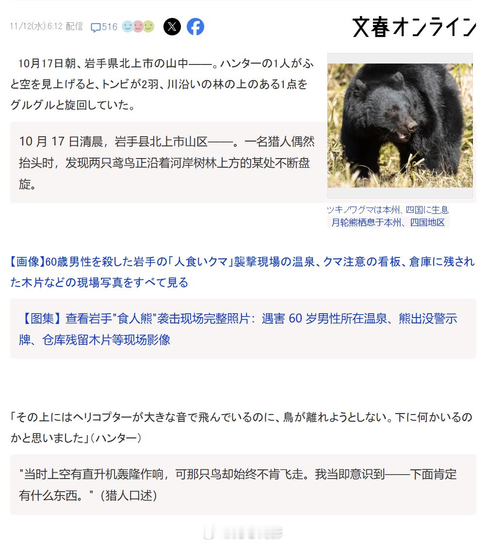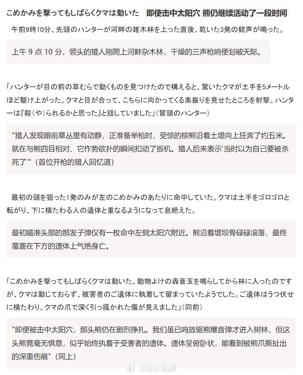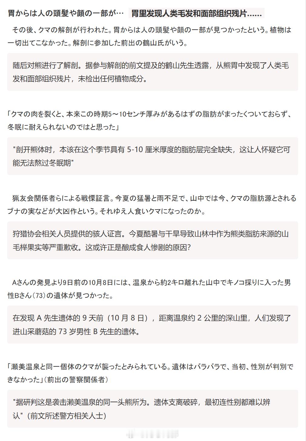 日本在猎杀的熊胃里发现人类毛发和面部组织残片。