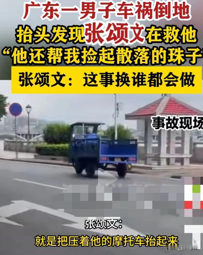 高启强,鱼不杀了,改去救人了吗,你这样被刀哥和老莫“噶掉的人”,算什么? 近日在广东,一男子开着辆小三轮,结果一不小心出了事故,正在倒地之际,忽然发现有人帮他抬起了压住他的车,结果这一眼望去,居然是《狂飙》里的高启强,这一下把受伤的男子惊住了。 原来当天本就是广东人的张颂文,和发小正在附近聚餐,吃完饭回去的路上看到这一幕,便果断的和车上的友人一起合力抬起了车,救下了被压的男子。最后等救护人员来了,他便走了。 这是什么神仙运气,救人的大哥是高启强呢,最后记者了解此事问到张颂文,他只说了一句,“这事太小了,换做谁都会这样做”。强哥,好样的。 (图片来自网络视频)