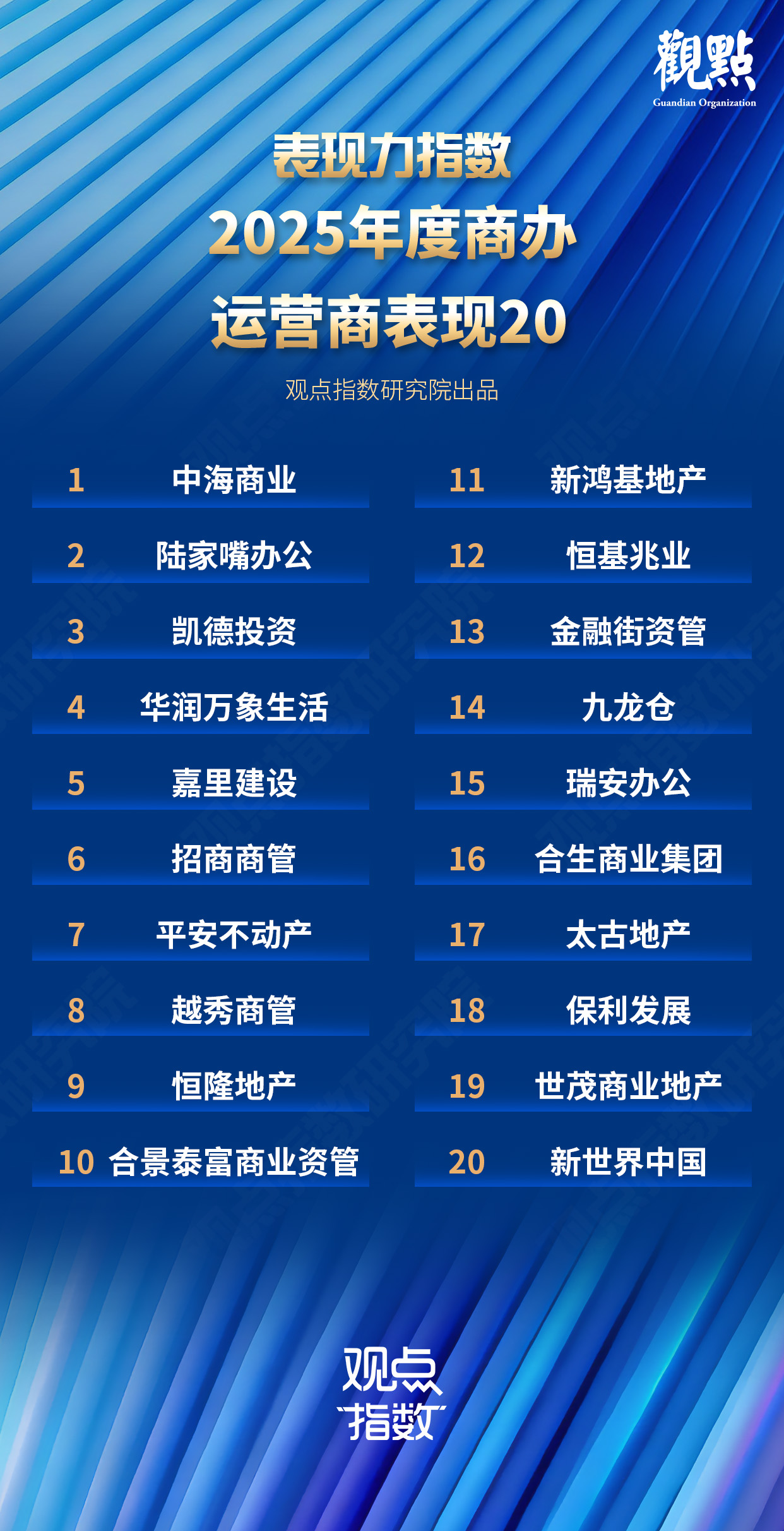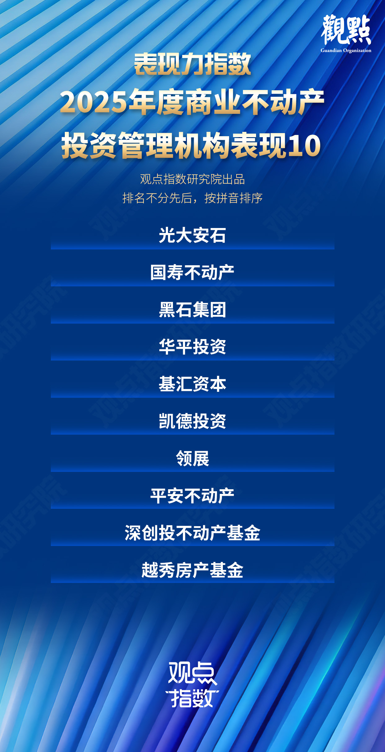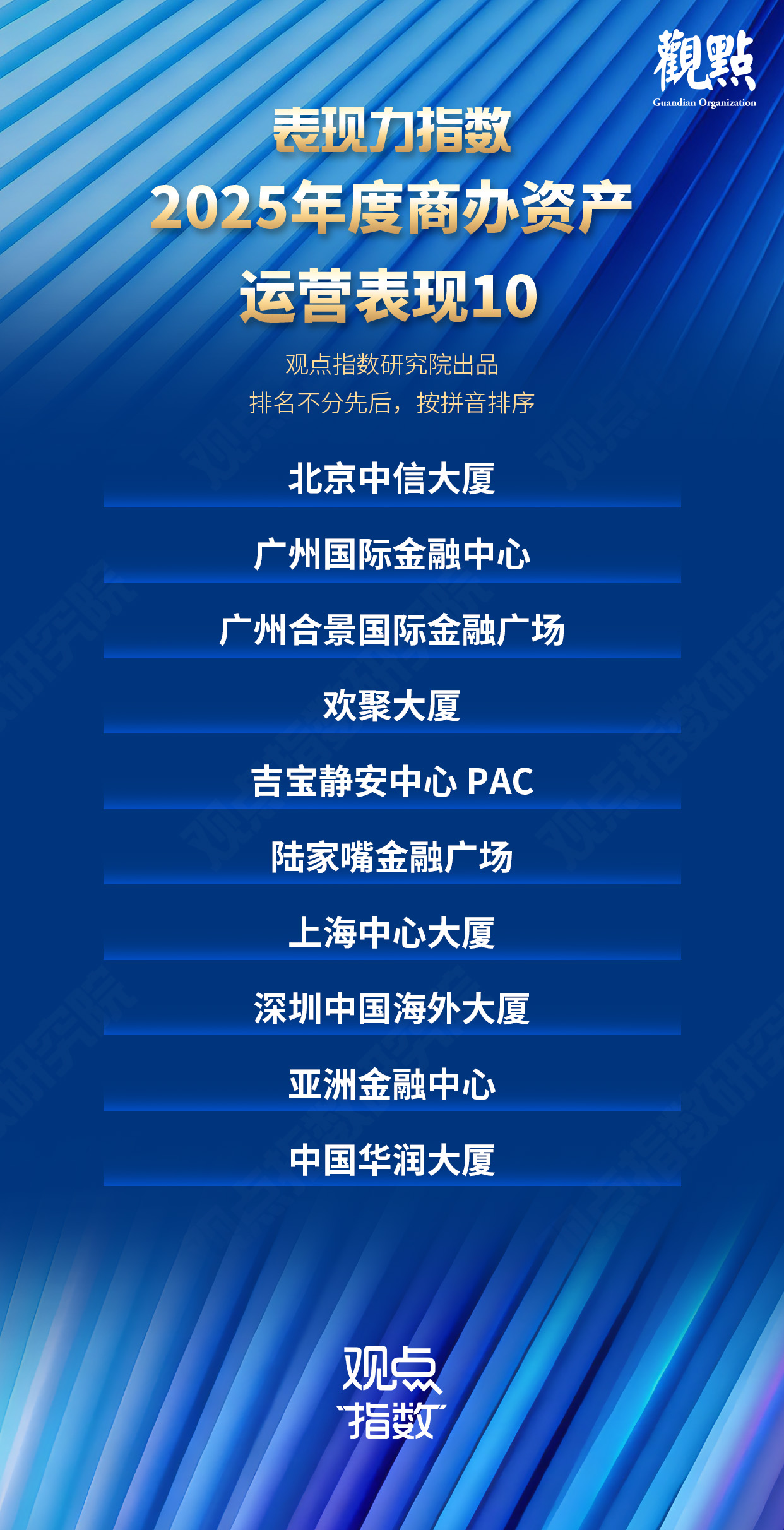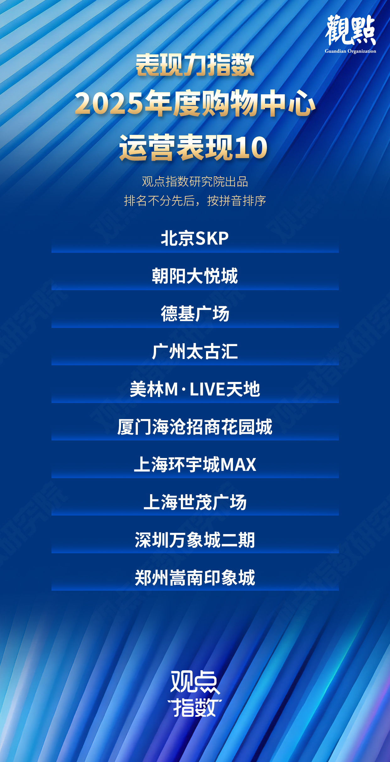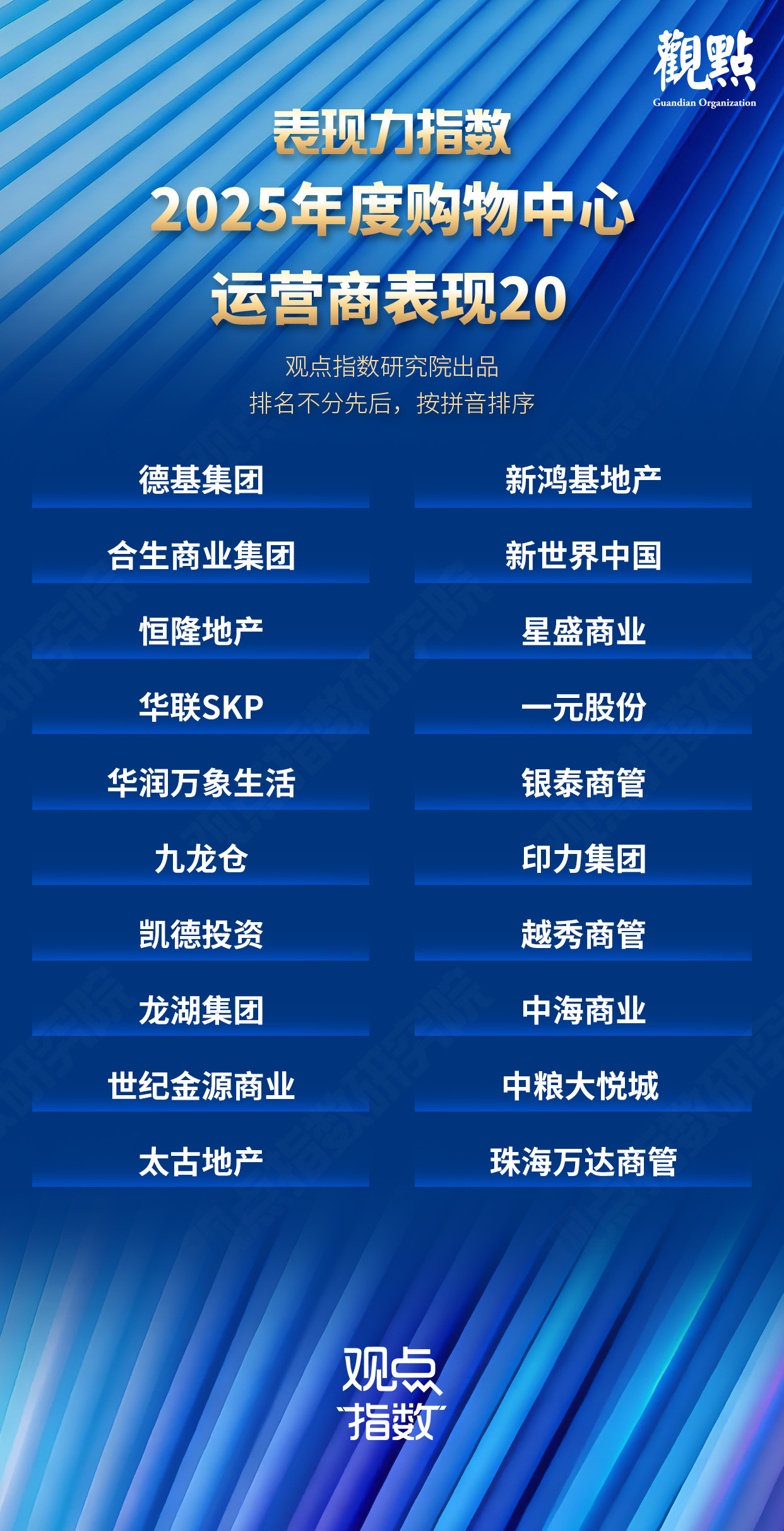 在此背景下,观点指数研究院依托专业深度调研与系统数据分析,发布“表现力指数•2025年度商业地产表现”,旨在为市场主体提供切实参照,助力行业在不确定性中探寻确定性的发展路径。