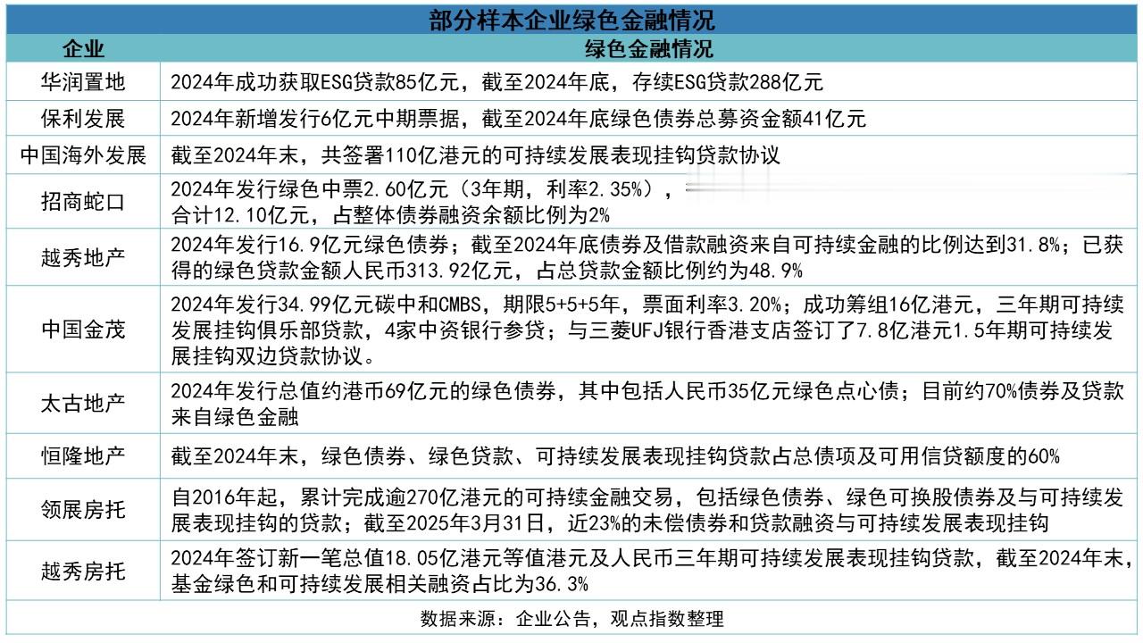 涉足商业地产的企业中,华润置地2024年成功获取ESG贷款85亿元,截至当年末存续ESG贷款288亿元。中国海外发展2024年共签署110亿港元的可持续发展表现挂钩贷款协议。越秀地产当年7月还成功发行16.90亿元离岸人民币点心债券,期限为3年,票面利率为4.10%;但均未明确募资用途是在商业地产项目建设或改造方面。