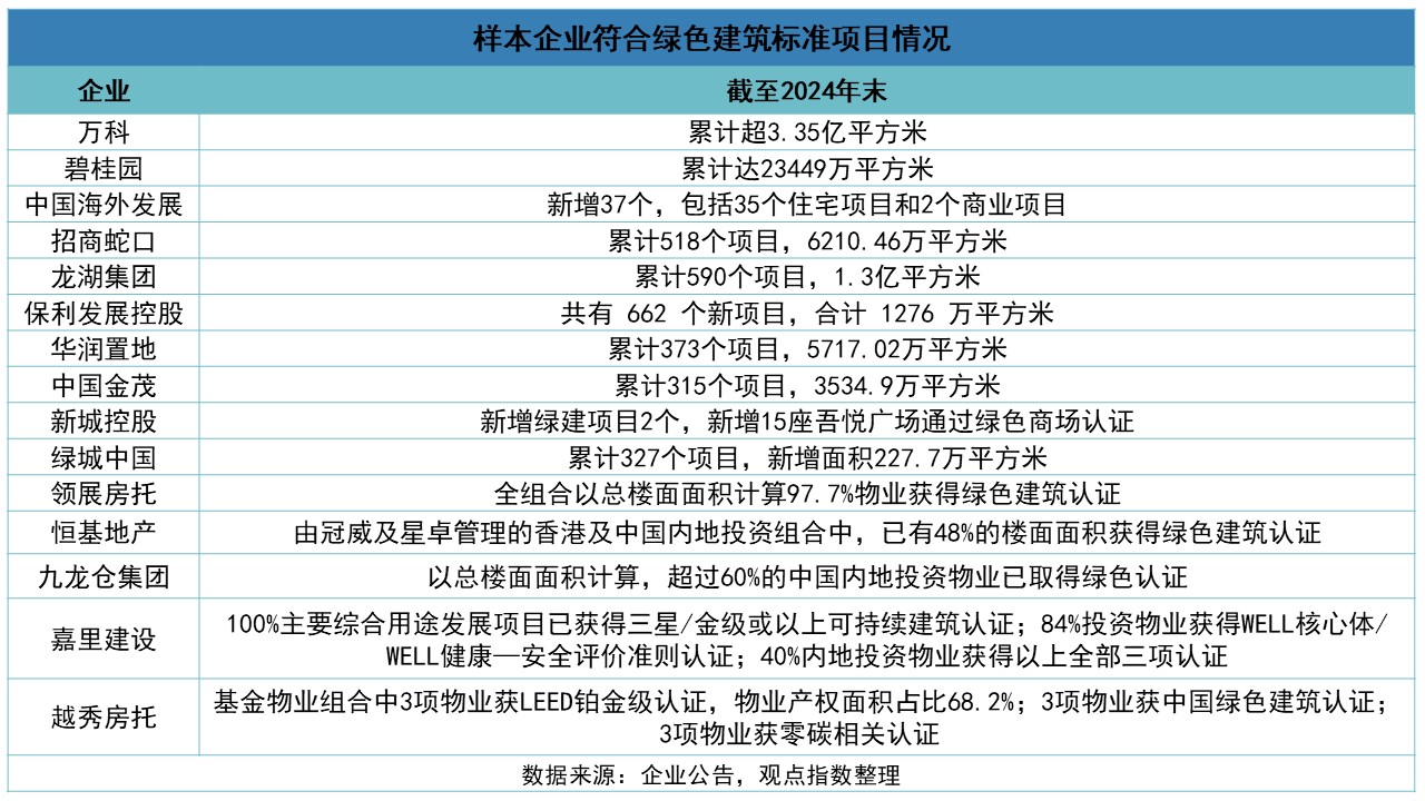 龙湖集团自2021年起,明确集团所有新建项目要达到国家绿色建筑标准。截至2024年底,其累计满足绿色建筑标准项目达590个,累计满足绿色建筑标准的项目面积超1.3亿平方米。