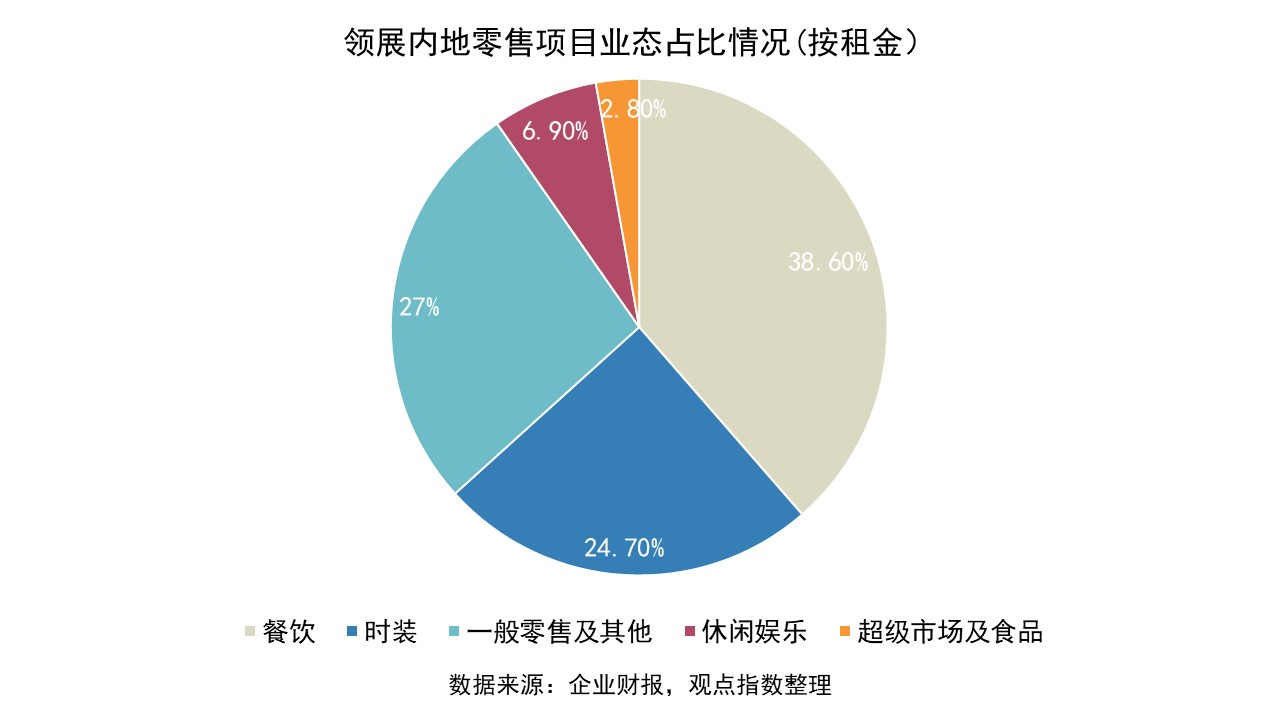 中端项目方面,主要通过主力店升级、空间改造和业态重组,提升区域市场的竞争力。以领展内地零售项目为例,其主力业态为餐饮和零售业态,相比高端项目,餐饮业态租金所占比重更大。业绩提升需求之下,这部分业态也成为了升级调整的重点。