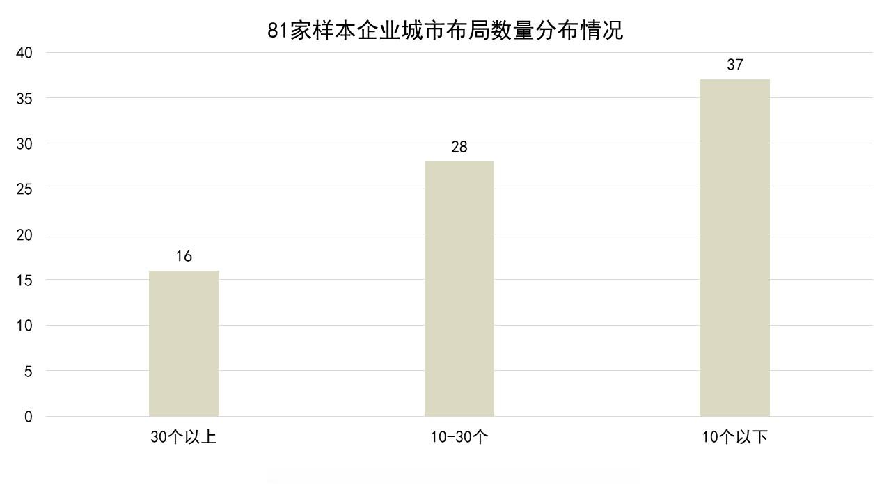可以发现,大部分企业布局的城市数量不多,这反映出当前的行业主要发展逻辑是采取区域深耕策略,将资源集中在熟悉的市场,这样可以较好地规避因不了解异地市场如政策、消费习惯、竞争环境而带来的风险。