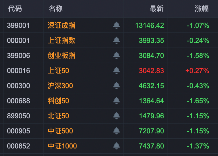 今日早间,A股小幅震荡,上证指数继续围绕4000点整固,创业板指、深证成指、北证50、科创50均跌超1%,大盘蓝筹股则表现较优,上证50小幅飘红。超4000只个股下跌,成交保持平稳。