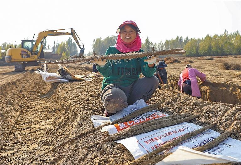 本报讯(记者张春娥通讯员陈放)近日,在固安县宫村镇门村的山药种植地里,农民正忙着挖掘山药。