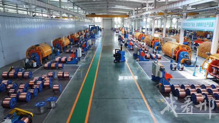 位于南和区的河北六二零一铝合金导线有限公司高端转型环保节能铝合金电缆及导体项目是省重点在建项目。图为该项目1号车间内自动化生产线正在有条不紊地运行。黄涛、耿昭摄