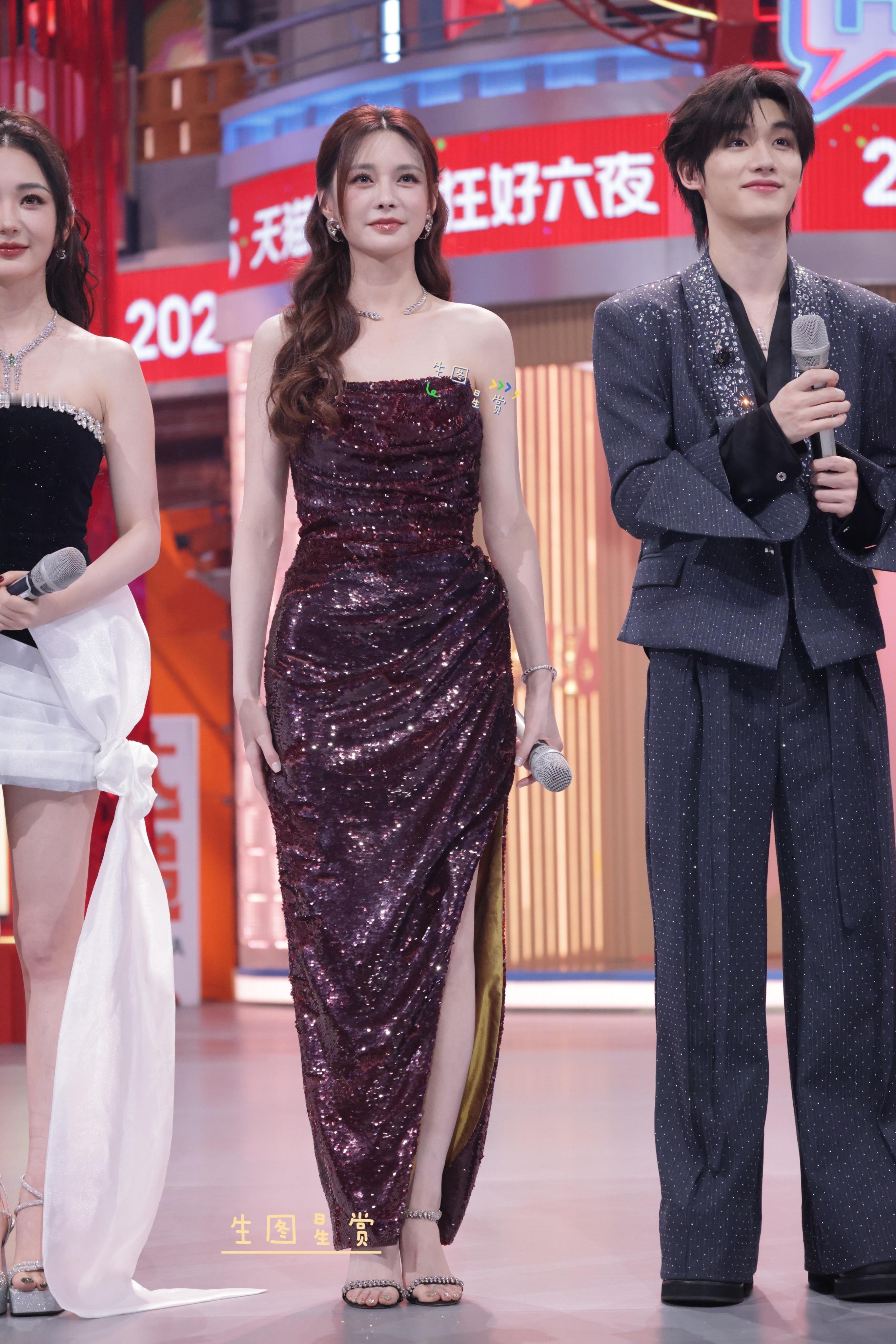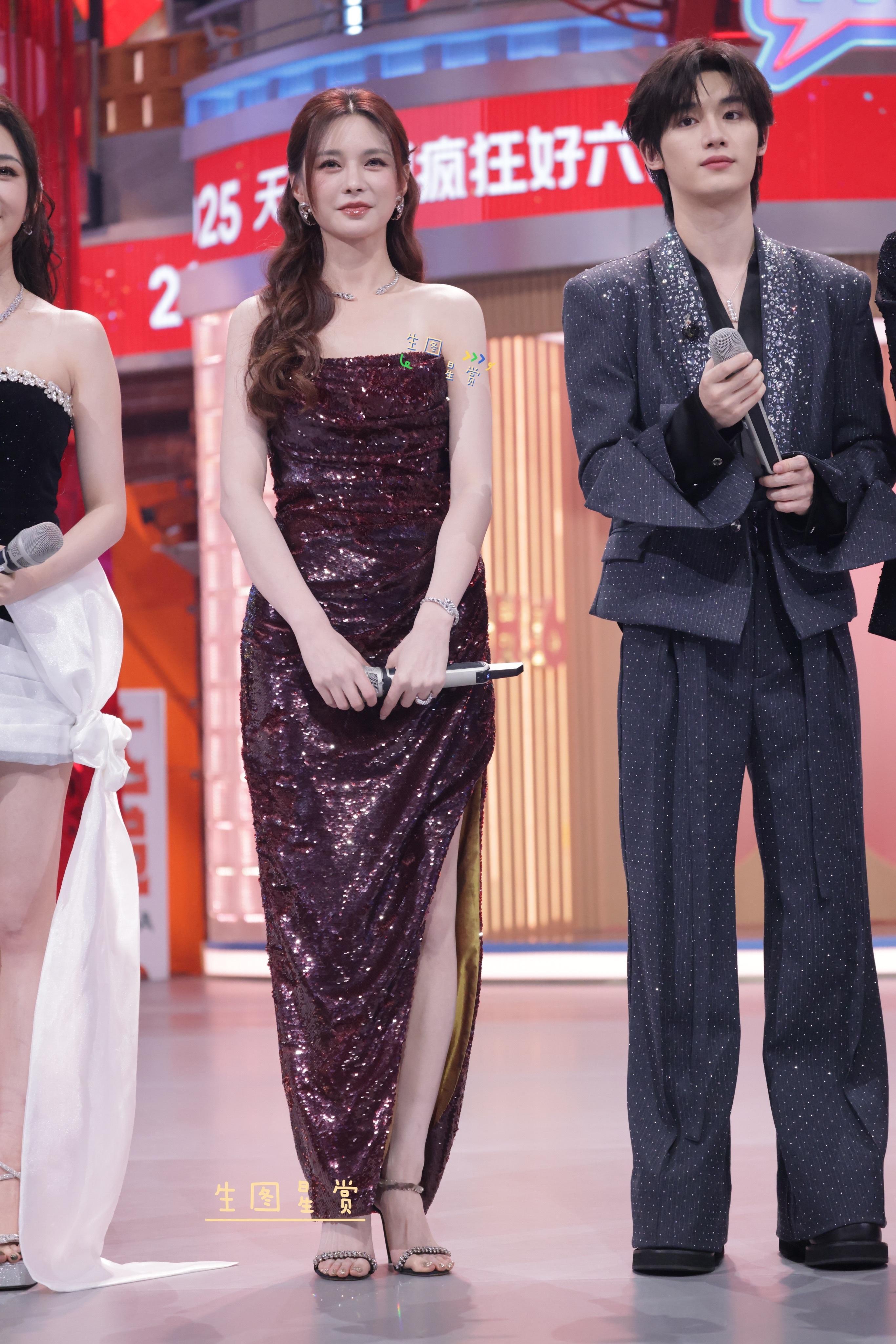 沈梦辰好六夜内场主持酒红色礼服美出高级感🍷