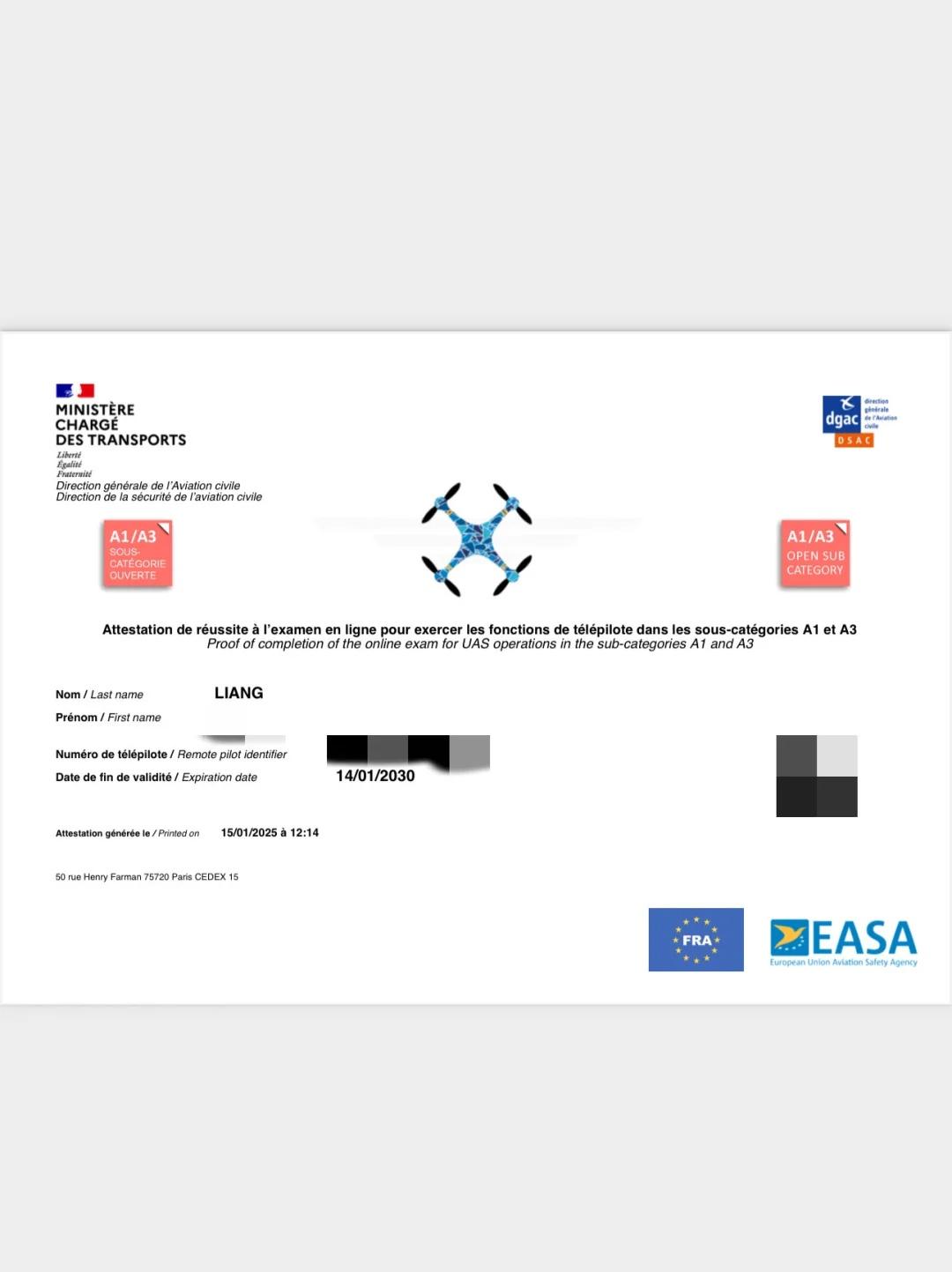 去挪威一定要带无人机🇳🇴附免费注册教程 挪威罗弗敦群岛的峡湾地貌,每年吸引了众多摄影爱好者 相信每一个喜欢航拍的朋友来到这里都会按捺不住想放飞的心情 按照挪威的规定,大于250g的无人机需要注册,欧盟🇪🇺大部分国家的注册都需要收取费用,推荐注册法国的无人机证,目前免费,流程简单,如下: 1.打开alphatango,点创建账号(图12) 2.输入个人信息(图14) 3.登记飞机信息,包括重量、序列号 4.完成考试(图15),遇到不会的可以问gpt 5.通过后即可下载证书(图16) 🈲如何查看禁飞区? 使用ninox drone app,即可查看实时的禁飞区信息,罗弗敦群岛大部分区域可以飞(图17) ✈️推荐几个航拍起飞点 📍 Flakstadbruene(图1),能拍到高架桥连接雪山 📍 Henningsvær(图2),海上足球场的经典位置 📍A镇(图3,4),欧洲E10公路的尽头 📍Reine(图5,6,7) 📍 Steffenakken(图8) 全屏封神挑战 带着无人机去旅行 挪威旅行 罗弗敦群岛 春节旅游