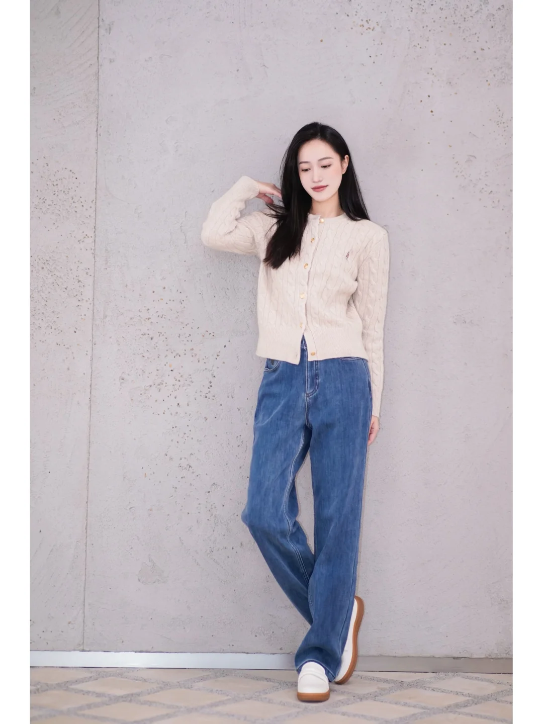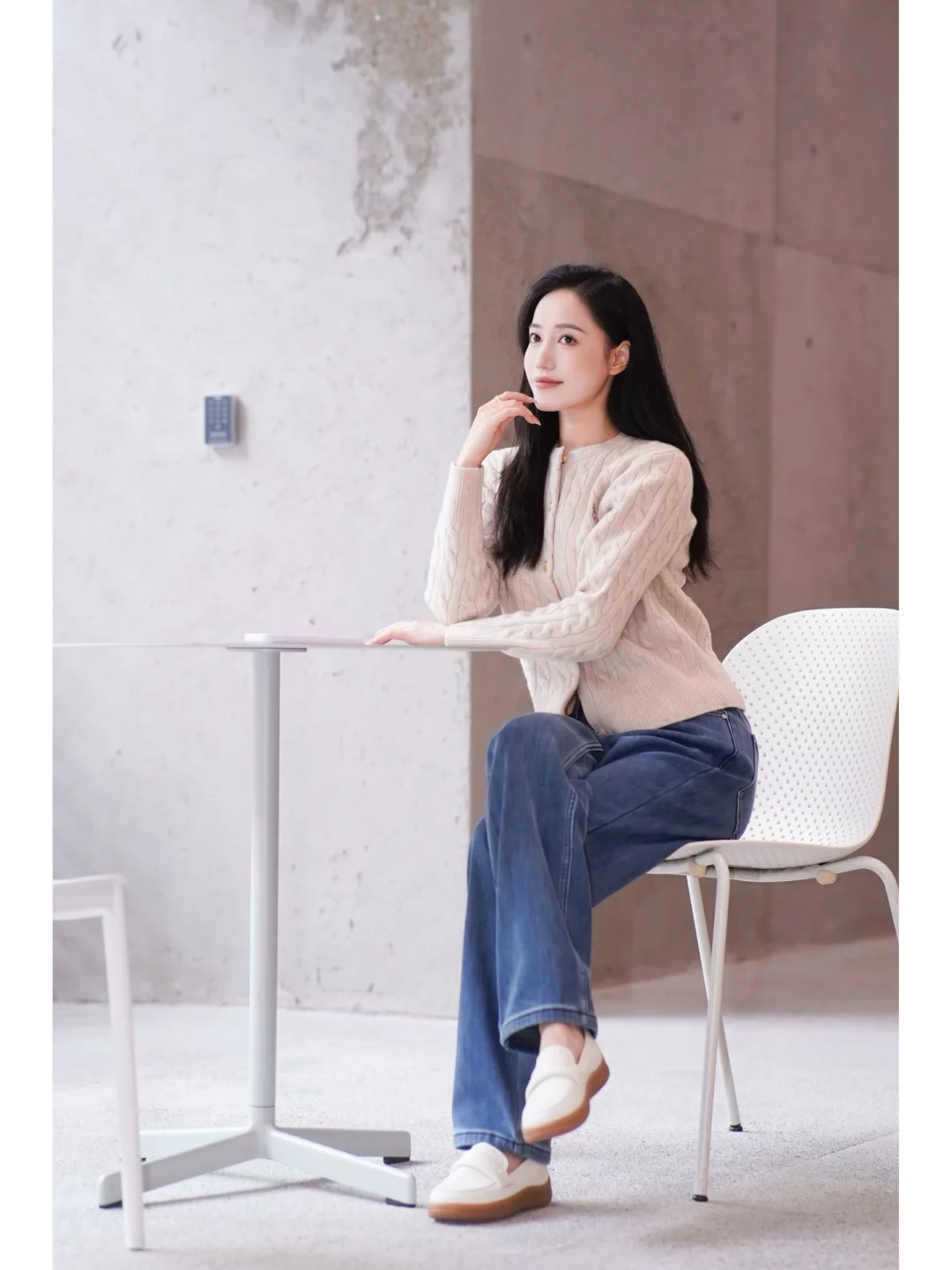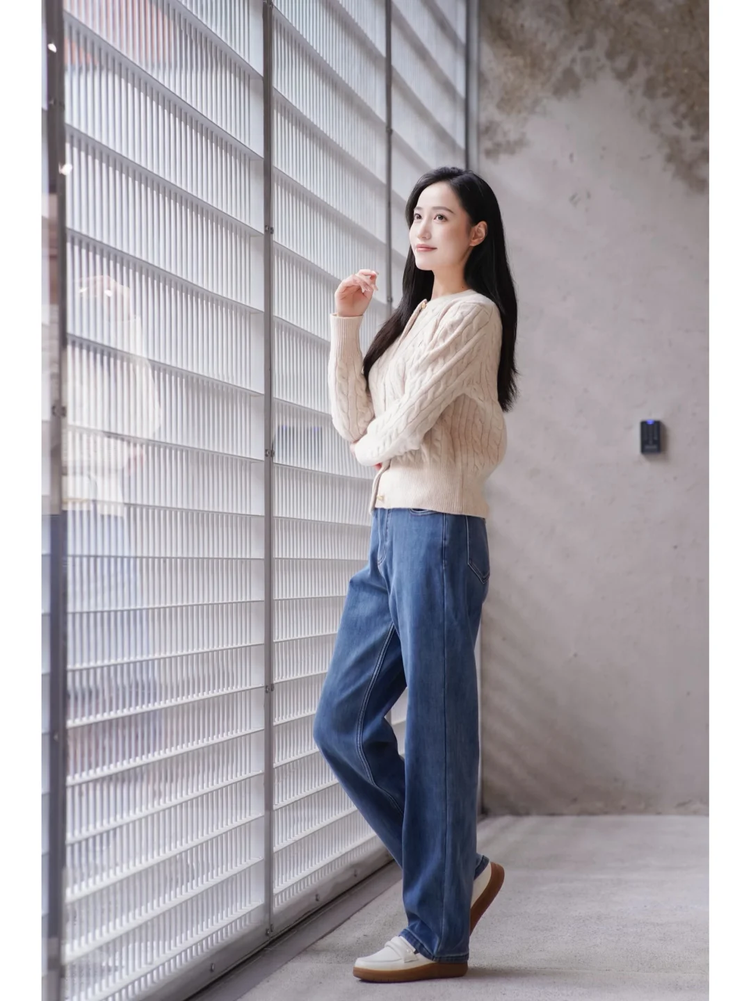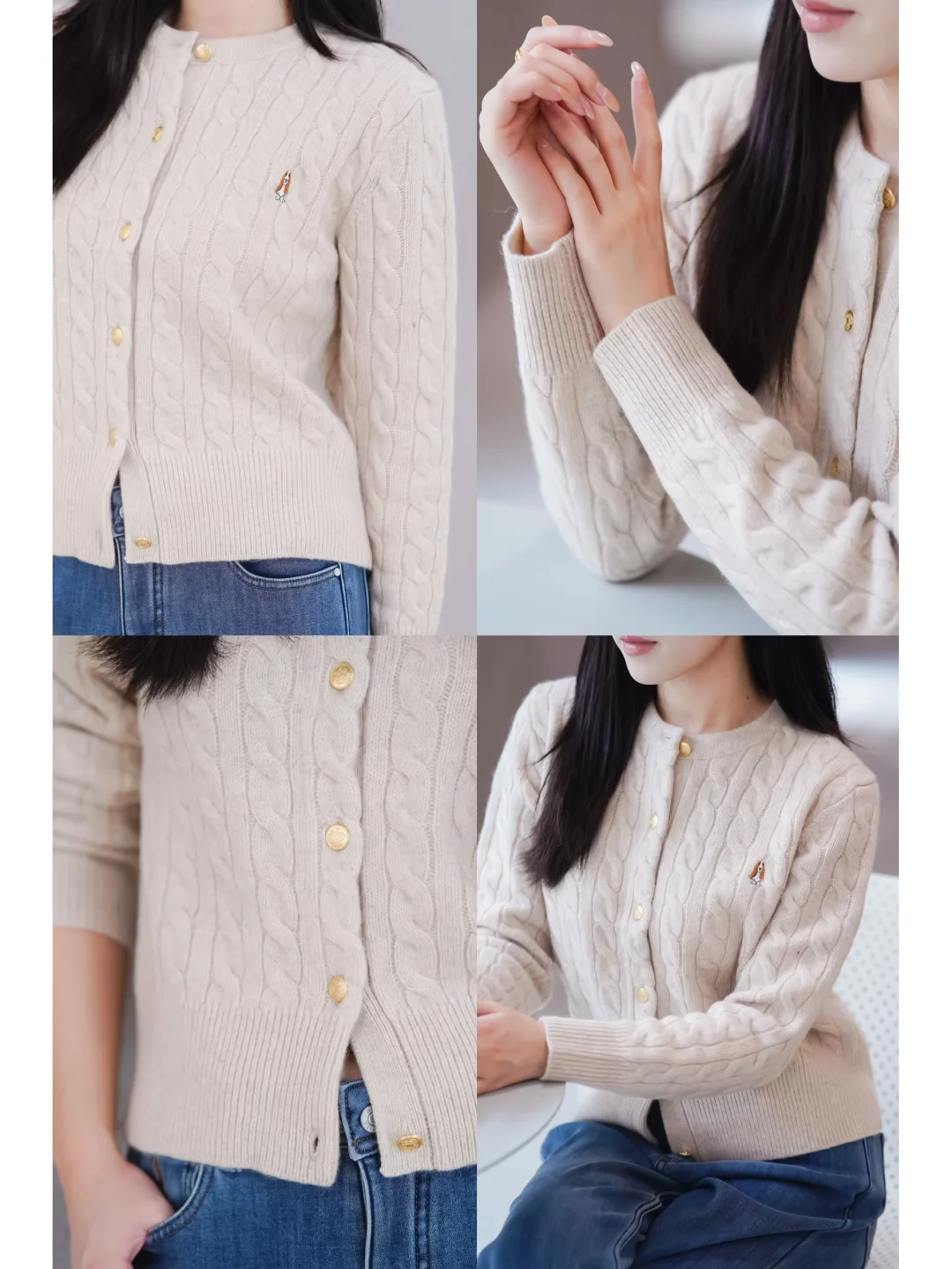 暇步士这件奶茶色绞花针织开衫是秋日氛围担当