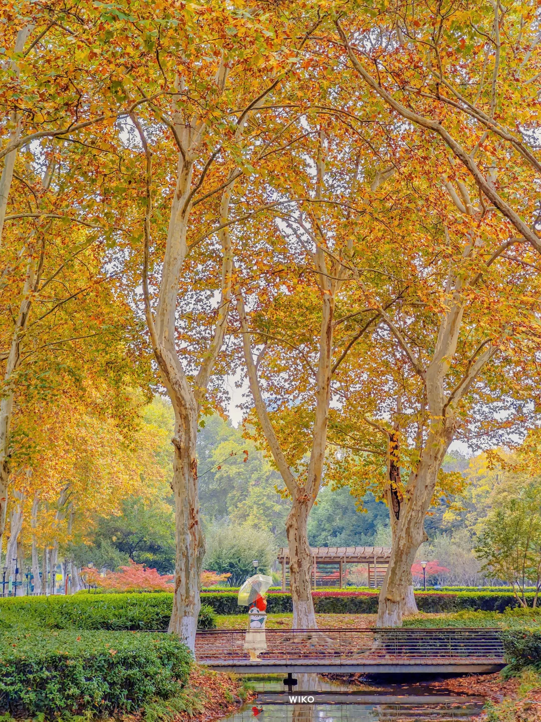 金黄银杏、火红枫叶、层叠水杉把园区染成调色盘,