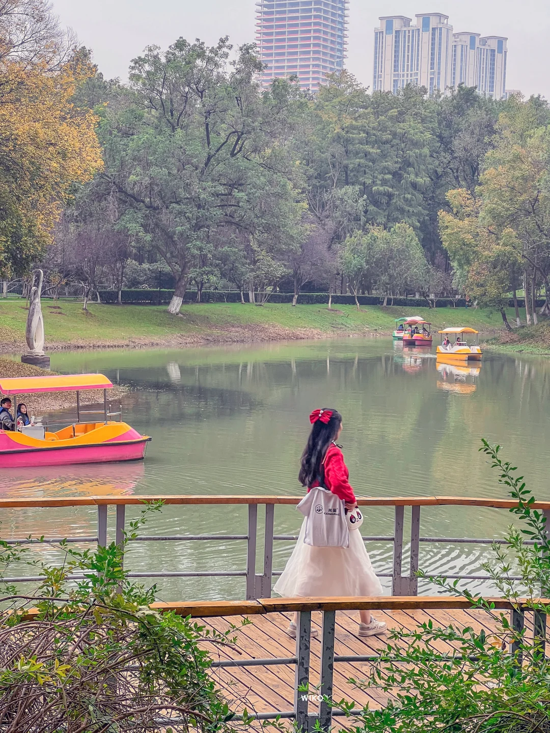 ✅游船:必玩!选脚踏船绕湖,拍水杉、红枫全景超赞,傍晚拍日落剪影自带电影感。