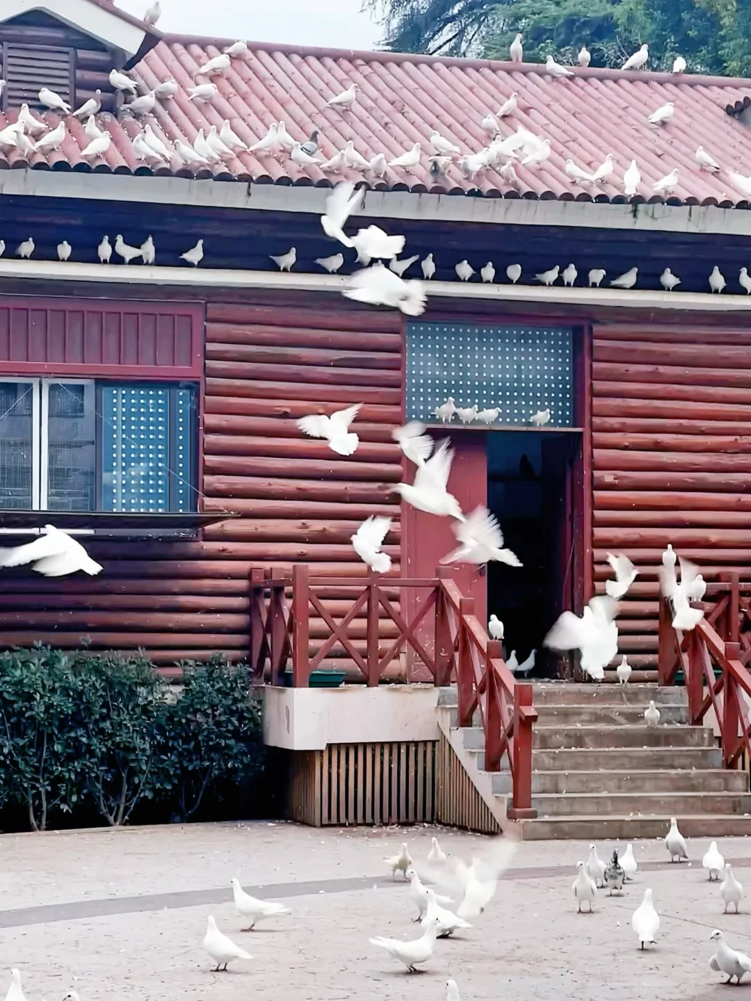 喂鸽子时一定要开短视频模式!鸽子起飞的瞬间一键抓拍