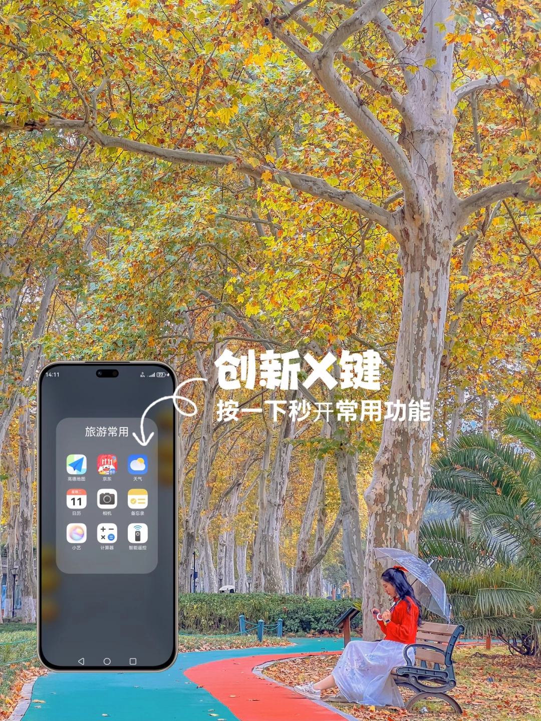 纪念碑旁的梧桐道超有氛围感,用手机长焦压缩空间,人物和秋景融合得恰到好处