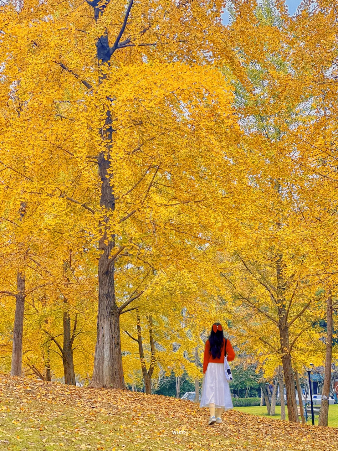 ✅秋日野餐:银杏大道旁的草坪超适合野餐!