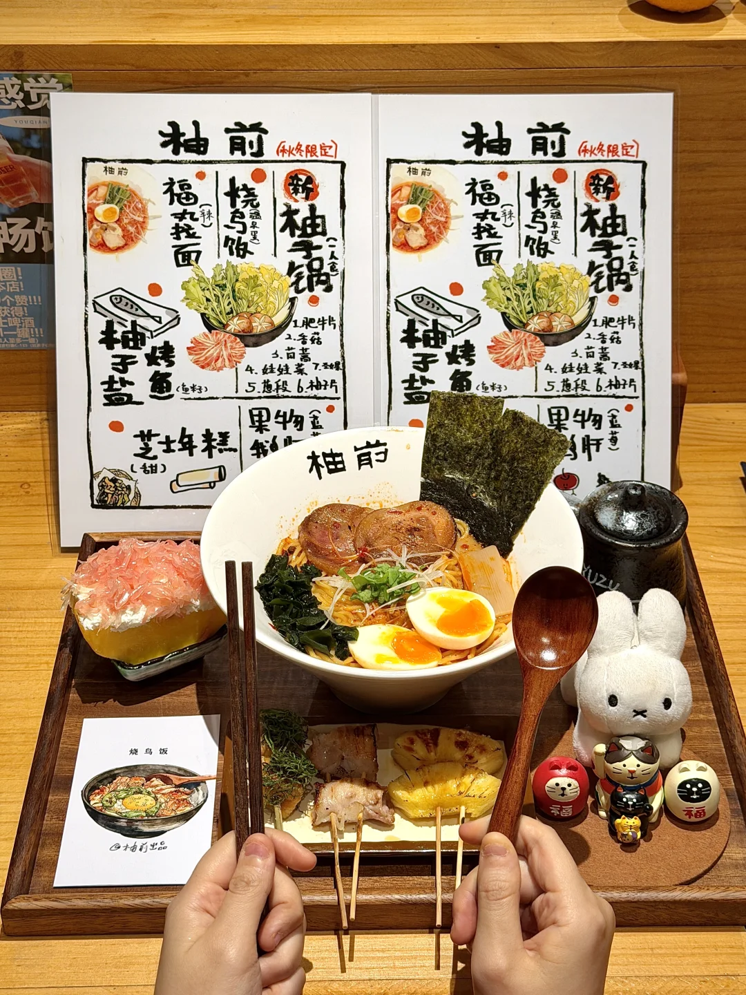 近期惊艳!!一周来6次的小食堂 是用心经营的宝藏小店!烧鸟口味和品质都没得说!!不管是一人食还是二人食都很适合!福丸拉面、烧鸟饭🍚、柚子寿喜锅……都好好吃啊!(柚前料理)