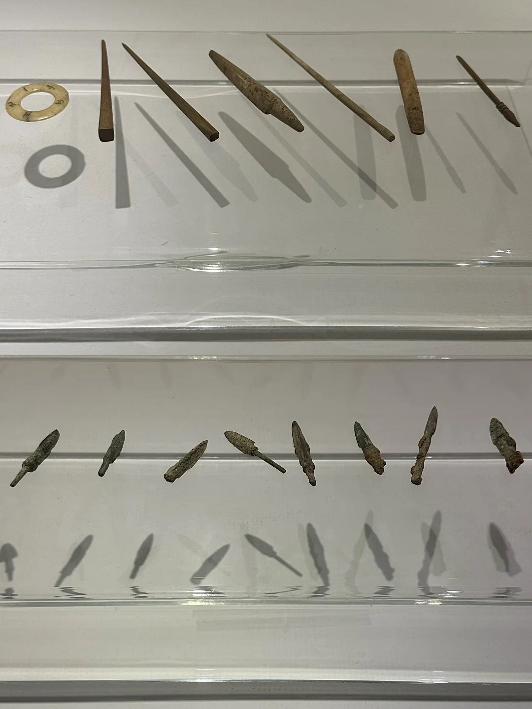 骨制品 箭簇 各种材质的纺轮、耕具 陶制乐舞俑、容器 西汉织物残片…数量不多但全面典型 且有小惊喜(俑人好几位舞姿真叫曼妙)