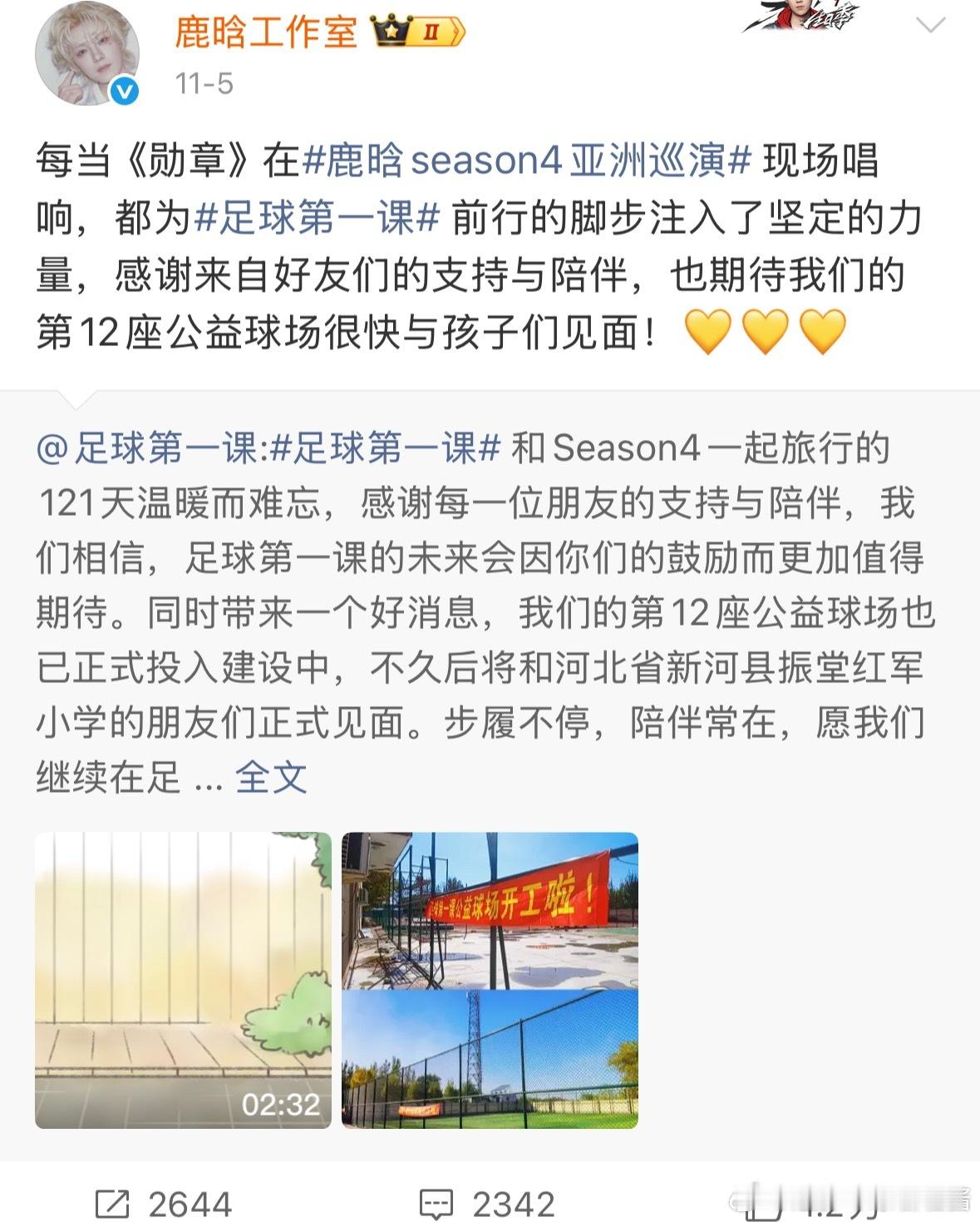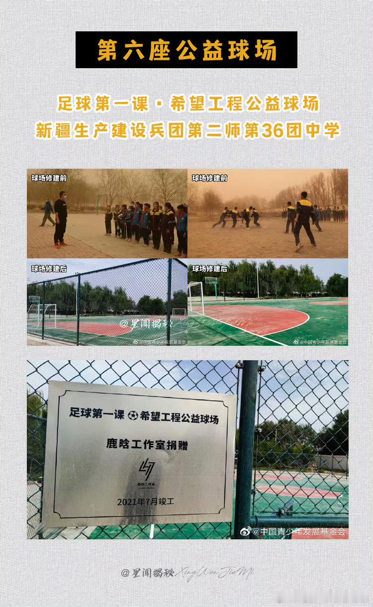 一直在默默做实事的鹿晗,不知不觉已经捐赠的13座公寓球场,其中11座已完成建设,