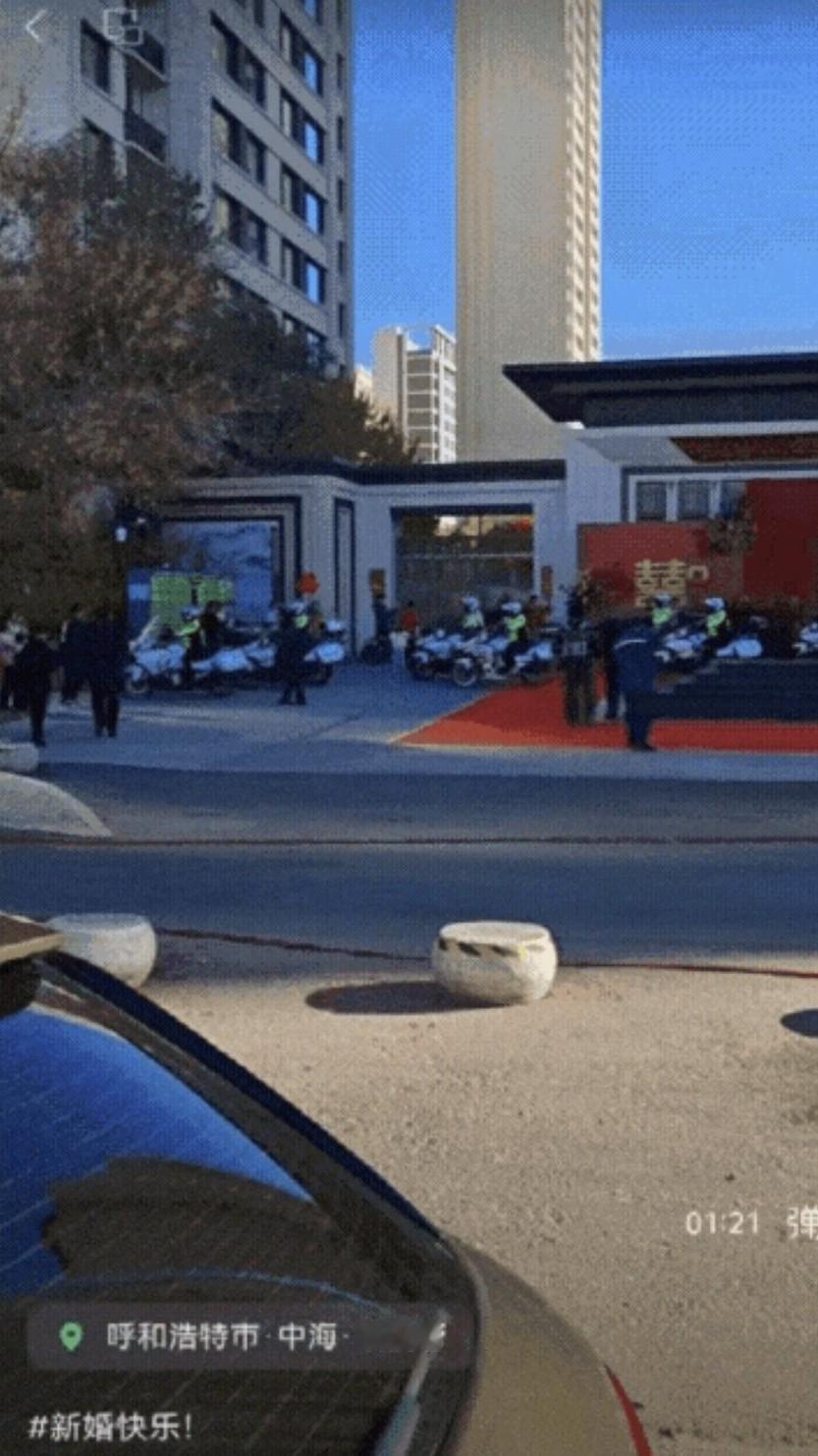 最近,内蒙古呼和浩特赛罕区一婚礼现场,8 人穿着和公安骑警超像的制式服装当开路车