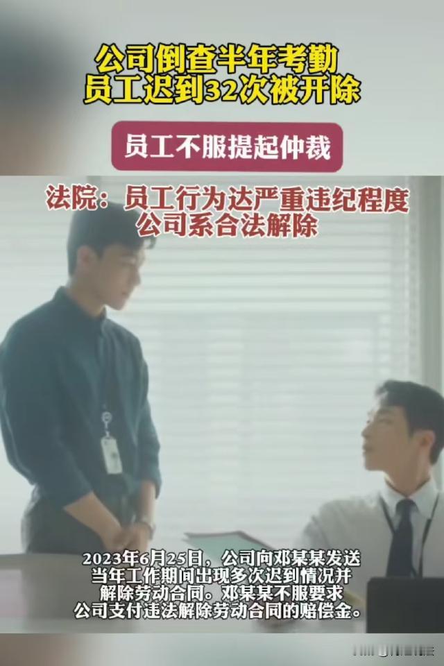重庆,男子邓某6个月迟到32次,公司通报批评后,对他下发了整改通知书,可第二天他仍迟到不误。四天后公司辞邓某,邓某不乐意了,非说公司是违法辞退,要求对方赔偿。 据半岛晨报报道,2020年12月,邓某入职某公司,双方签了3年的劳动合同。 合同中写明,员工入职后应该遵守包括公司《员工手册》《休假管理补充规定》等多项办法、须知中的规章制度,邓某签字确认,已认真阅读、理解,并同意遵守。 公司的制度中写明,员工当月迟到3到5次的,按照公司规定处罚,并书面批评警告,当月迟到5次以上的,属于严重违反公司制度。严重违反公司制度的,公司可以主动解除劳动关系。 转眼间,邓某入职已经两年半了,2023年6月份,公司查看考勤记录,发现他上月迟到了8次。 于是,公司倒查邓某的考勤记录,发现他在这半年里一共迟到了32次,而之前的两年里他也频繁迟到,两年半内一共迟到114次。 公司也被这个数据惊呆了,因为邓某来了两年多,也算老员工了,于是6月25日,公司向邓某发送了《通报批评》,因为发送后邓某无视批评再次迟到,28日,公司又向他发送了《员工整改通知书》,并写明整改期限为两天,如果邓某拒不改正,将视为严重违反规章制度。 谁知,就在发送整改通知书的第二天,邓某又又又迟到了! 公司忍无可忍,7月3日,向邓某发送了《解除劳动合同通知书》,将他开除了,开除的理由是严重违反公司的规章制度,且在要求整改后,拒不改正。 邓某不服,非说公司是违法解除劳动合同,于是提起劳动仲裁,要求公司支付违法解除劳动合同的违约金。 那么,公司开除邓某是否属于违法解除劳动关系? 《劳动合同法》第四条规定,用人单位应当依法建立和完善劳动规章制度,保障劳动者享有劳动权利、履行劳动义务。 本案中,公司的《员工手册》及《休假管理补充规定》明确了员工考勤制度,将当月迟到5次以上界定为严重违反公司制度,公司可主动解除劳动关系。 邓某在入职时签字确认已认真阅读、理解并同意遵守这些规章制度。 只要公司的这些制度制定程序合法,内容不违反法律、行政法规的强制性规定,那么该规章制度就对邓某具有约束力。 从考勤记录来看,邓某在2023年上半年累计迟到32次,且在之前两年里也频繁迟到,两年半内一共迟到114次。 公司在发现其迟到情况后,于6月25日发送《通报批评》,在邓某无视批评再次迟到后,又于28日发送《员工整改通知书》,并明确告知,若邓某拒不改正将视为严重违反规章制度。然而,次日邓某仍迟到。 根据《劳动合同法》第三十九条规定,劳动者严重违反用人单位的规章制度的,用人单位可以解除劳动合同。 邓某的迟到次数已达到规章制度中对于严重违纪的界定,且在公司给予整改机会后仍不改正,其行为构成严重违反公司规章制度。 邓某认为,他在6月上半月只迟到一次,未达到辞退的严重程度,倒查考勤动,就是为了零补偿裁员。 从法律角度看,公司依据合法有效的规章制度对邓某的考勤情况进行审查是合理的。 邓某多次迟到的事实客观存在,不能以之前未收到警告就认为其考勤记录被接受。 同时,公司在解除劳动合同前已给予邓某整改机会,并非突然解除。因此,邓某的主张缺乏法律依据。 最终,一审认为邓某严重违反公司制度,公司有权解除劳动关系,邓某要求公司支付违法解除赔偿金没有法律根据。 一审判决后邓某不服,又提起了上诉,二审维持原判。