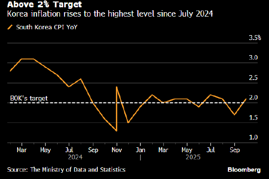 李昌镛发表此番言论之际,经济学家们正试图评估韩国央行的宽松周期是否已经结束。自5月上一次降息以来,经济增速和消费者通胀均超出预期。与此同时,威胁金融稳定的房地产市场上涨势头异常强劲。