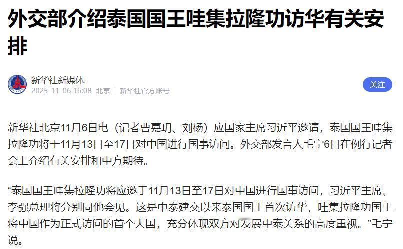 泰国王破天荒访华!为何倒向中国怀抱?只因有美国无法匹敌的底牌! 在这个中泰建交半个世纪的节点,泰国国王哇集拉隆功的首次访华,本质上是中国手里攥着美国根本拿不出的“硬通货”——金白银的合作和实打实的发展红利。 经贸账本最能说明问题,去年中泰双边贸易额飙到1339.8亿美元,中国已经连续12年稳坐泰国最大贸易伙伴的位置,泰国40%以上的农产品都要靠中国市场消化,单是热带水果一项就让泰国果农笑开了花。 反观美国,在泰国贸易版图里连前三都挤不进去,说要帮泰国卖农产品,喊了好几年连个具体渠道都没落实。 投资领域更是中国的主场秀,2018到去2024年间中国在泰投资项目近两千个,总金额超7700亿泰铢,尤其是去年一年就砸下1746亿泰铢,全投在电子元件、电动汽车这些高附加值领域。 比亚迪在泰国的工厂从开工到投产只用了16个月,年产能15万辆,第800万辆新能源汽车直接在泰国下线,这种中国速度让习惯了慢节奏的东南亚国家咋舌。 更厉害的是中国品牌在泰国电动车市场的表现,去年纯电汽车销量榜上前五全是中国品牌,总市场占有率高达80.6%,把日系车逼得只能在燃油车市场苟延残喘。 美国车企倒是想来分一杯羹,可除了特斯拉象征性地卖几辆进口车,连个本地工厂的影子都没有,拿什么跟中国比? 当然,只有经济合作无法从根本上解决泰国面临的经济问题,所以也就有了基础设施方面的合作,而中泰铁路就是最好的例子。 这条总长609公里、投资4340亿泰铢的项目虽然建设周期不短,但中国企业实打实把桥墩立了起来,一期工程已经完成36%,预计2027年就能通车。 中国企业还帮泰国建了拉马八世大桥、素万纳普国际机场这些地标建筑,林查班港扩建工程更是让泰国海运能力提升了三成,这些看得见摸得着的工程,可比美国官员空口说白话管用一百倍。 数字经济领域中国更是降维打击,华为帮泰国建成了东南亚首个5G商用网络,现在泰国街头随处可见中国品牌的5G基站;TikTok直接宣布未来五年在泰投资3000亿泰铢,要把泰国打造成东盟数字中心。 还有30家中国PCB企业在泰国建厂,让泰国一跃成为东盟最大的印制电路板生产基地,这些产业升级的助力美国根本给不了。 美国倒是想搞数字合作,可除了要求泰国禁用华为设备,就是推销些过时的技术,泰国官员私下都说跟美国谈合作太累,光扯皮就要耗掉半年时间。 最关键的是中国懂得尊重泰国的国情,从不干涉人家的内政,对泰国王室更是保持应有的礼仪。美国就不一样了,动不动就拿人权说事,去年还因为泰国的劳工问题制裁了两家泰国企业,这种居高临下的态度谁受得了。 泰国王这次带着王后访华,不仅是庆祝中泰建交50周年,更是要给两国合作再上一道保险,毕竟跟着中国能拿到真投资、真技术、真市场,跟着美国除了听些漂亮话啥都没有,换谁都会选边站。