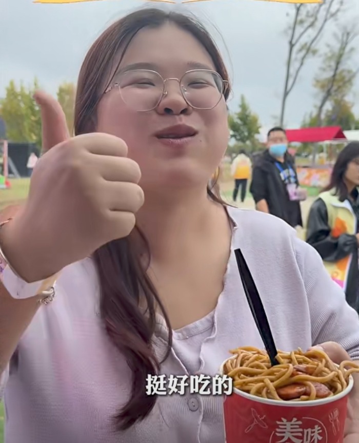 “为了这碗炒面,我排了很长时间的队,但真的太值了!”从湖南湘潭专程赶来参加音乐节的乐迷陈丝滢,手里端着一份热气腾腾的炒面,兴奋地告诉记者。