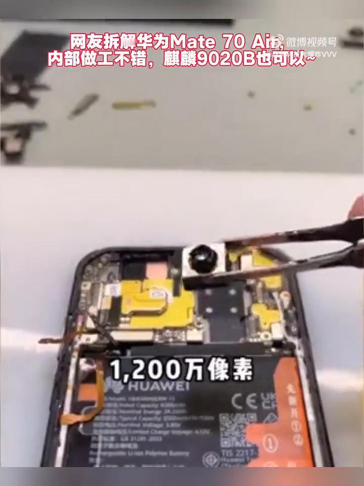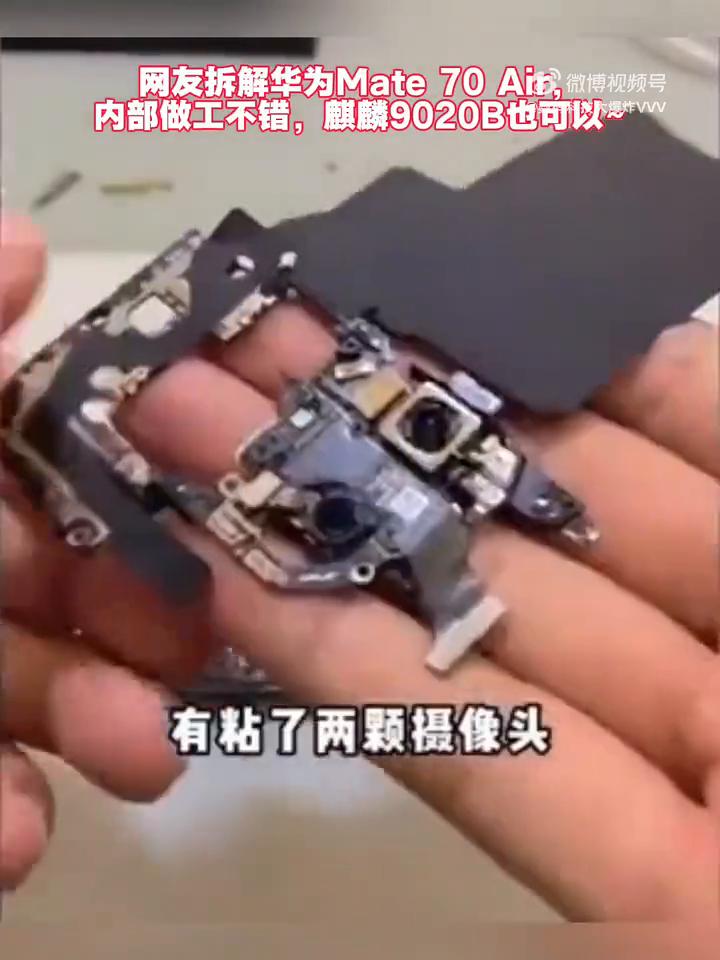 今天来拆一个新品,新出的mate70l。开箱,网上的评测视频相信大家应该都看到了,这边主要的是负责拆解,废话不多说直接拆。 这次机器还是比较做的比较薄,找一台麒麟pro对比一下,这是薄,再找另外一个参照物对比一下,找一个一毛钱的硬币竖着也可以比一下,横竖都比一下。不开玩笑了,现在直接开始拆解。 这个就拆下来了,电池很大,主板空间已经被压缩,就这么点了。后盖是锦纤材质,反的电池这里有一个类似于金属的铁片做的保护。后置镜框上集成了nlc天线,这是天线的两个触点。这次的摄像头没有了可变光圈了,而且支持光圈防抖,应该是为了做轻薄的缘故。 取下头发,再加上四个螺丝,取下所有螺丝以后就可以拆卸主板支架了。主板支架上面有延伸了一块石墨散热贴纸,延伸下来,拿掉以后断开相关的开心。这里还有指纹连着,主板支架上有粘了两颗摄像头,这颗是红枫镜头,一百五十万的多光谱通道红枫颜色摄像头。另外一个是八百万像素的超广角vg镜头。 取下主板支架以后整机就可以断电了,加热了一下,取下扬声器,上扬声器的尺寸还是蛮大的。这个就是主色了,主色没有可变光圈,应该是要做轻薄,所以把可变光圈就取消掉了。主摄的参数是五千万像素超感光大底主摄f一点八的光圈,这是ois光学防抖。这颗是一千二百万像素ryyb的长焦防抖镜头。 断开主板上的两颗同轴线一黑一白,取下显摄,显示是一千零七十万像素超广角摄像头。顺着这个位置轻轻的就可以抬下主板,看到背面打满了三个规矩,砍掉主板上的三个规矩就可以看到cpu,cpu是麒麟九零二零b,旁边这个小的是内存。 继续向下拆卸,这里可以看到电池是六千五百毫安时,电池容量比mate70pro的还要大,而且机身又做的很薄,所以机器的续航应该差不了。依次取下小板上的所有螺丝,取下组fc屏幕排线,取下声卡卡坡,最后把扬声器踩起来,留下扬声器的尺寸比上扬声器稍微大一点,是通过触点连接小板,横向用点力就可以取下小版。 小版设计的也是比较紧凑,一层的麦克风以及tc充电口和信用卡插座,屏幕是一百二十赫兹的高刷,屏幕比例是十八比九,屏幕的触控海洋率是三百赫兹。拆卸到这里就结束了,这是拆卸下来所有的配件,现在装回这次的七零二,在六点六毫米的机身厚度下塞入了六千五百毫安的大电池,再加上四千一百九十九的售价可谓是长翼毛马,如果能抢到国股也就三千多,还是很值得入手的。 本次的拆机视频就到此结束。