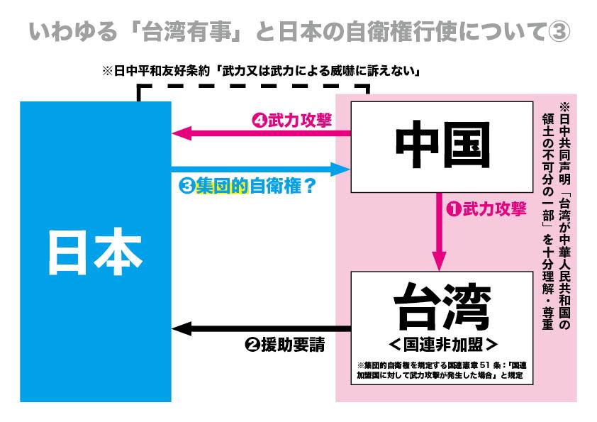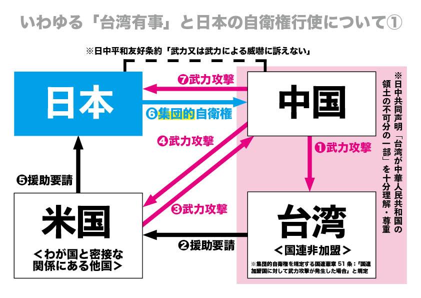 日本所说的在台海问题上的集体自卫权,到底是怎么回事?11月12日,日本立宪民主党的议员辻元清美用了三张图来解释,可以说是讲的比较清楚了。而且也集中体现了日本政界的很多内部考虑。 首先,根据辻元清美的说法,日本内部这么多年讨论的都是图1和图2当中的情形。图1当中总共包括7个步骤:一是中方发起攻击,二是台湾方面向美国要求援助,三是美国对中方发起攻击,四是中方对美国作出反击,五是美国要求日本进行援助,六是日本正式行使集体自卫权并对中方发起攻击,七是中方对日本发动军事反击。这是图一当中的全流程。 而图2当中的流程和图1略有不同:一是中方发起攻击,二是台湾方面向美国请求援助,三是美军驻日基地对中国发起攻击,四是中方对美军驻日基地发起反击,五是日本由于受到攻击而行使个别自卫权,六是中方对日本进行军事反击。 根据辻元清美议员的说法,过去日本内部所讨论的主要是以上的两种情形。但这一次高市早苗所提出的,则是图3的新情况:一是中方发起攻击,二是台湾直接向日本要求援助,三是日本直接行使集体自卫权对中方发起进攻,四是中方对日本发起军事反击。可以说,这种设想跟过去日本的外交和军事想定,是截然不同的。也是在这一次舆论讨论当中被忽视的。 不过,虽然辻元清美指出了高市早苗观点当中的错误之处。但从这几张图当中,也看出了日本思维的局限之处。无论是图1、图2还是图3,他们都认为台海危机的起点是中方对台发起进攻。但这显然与事实是不符的,我们的《反分裂国家法》明确规定了发起军事行动的前提条件,现在挑动危机升级的并不是大陆,而是岛内的独派势力。无论是法理还是实质独立,才是导致局势难以挽回的最根本原因。而在这样的前提之下,无论是美国还是日本,军事援台都是缺乏法律支持,也是站不住脚的。从古至今,作战都讲究一个师出有名,美日也是地缘政治的老玩家了,没想到他们完全把这一点给忽略了。