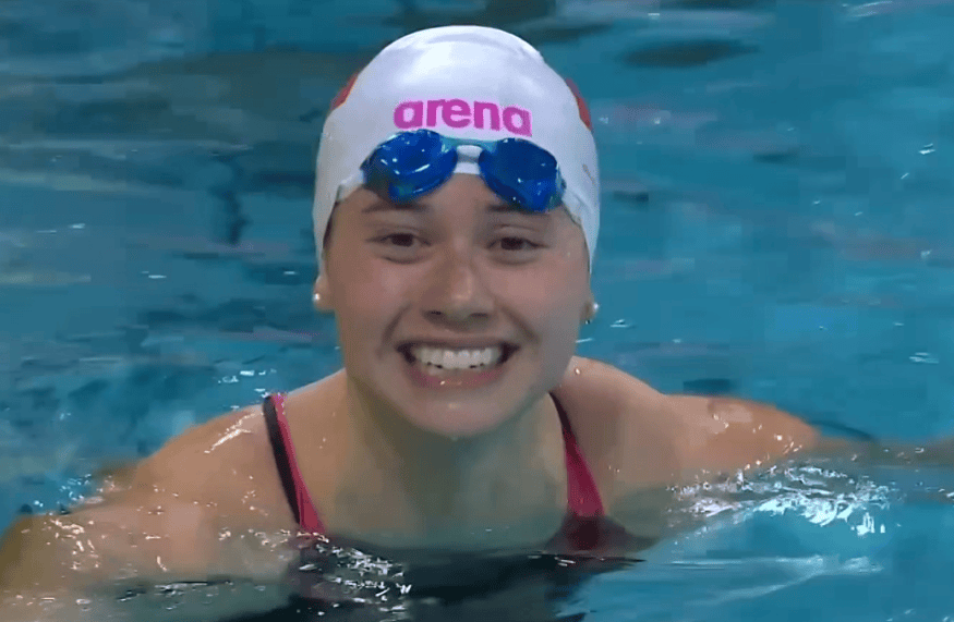 广东队的1:55.81刷新个人最好成绩,总排名第一;何诗蓓1:56.73排名第二,李冰洁游出1:57.73排名第三。