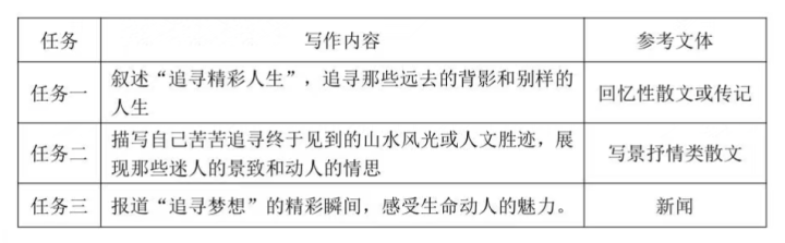 请你参与写作任务,时光无法倒流,往事不可重现,但它们能在文字中再次追寻。追寻远历史不可“穿越”去的背影,再现那些真实存在的别样人生;追寻奇异的山水,吟那些荡心灵的美丽篇章:追寻迅捷的新闻,感受那些动人心弦的美丽瞬间……