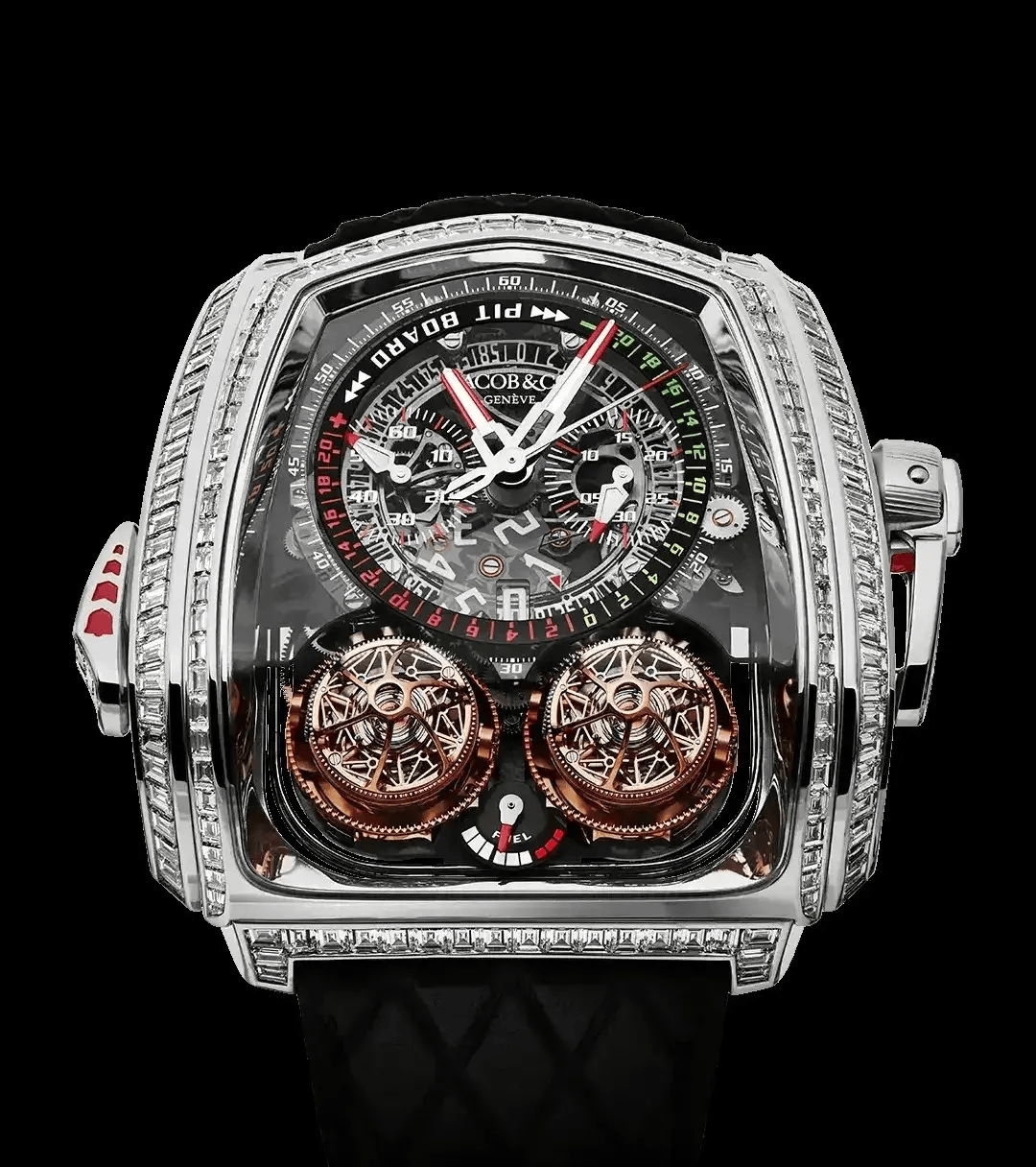 据悉,这款腕表由18K白金打造,全球仅限量18枚。腕表具备十进制三问功能和双三轴陀飞轮装置,这些设计有助于提升走时精度,表身则镶嵌了超过360颗长阶梯形切割钻石。