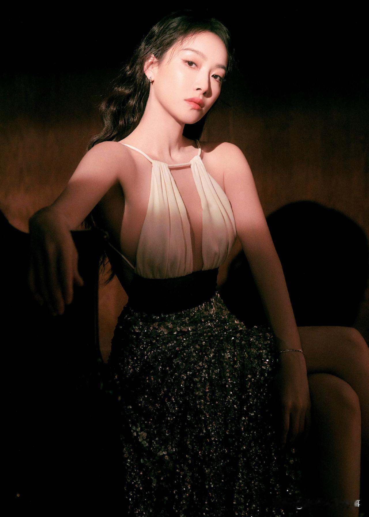 《银裙与玉背》 光缠上她的肩背,像揉碎的月落进银裙的闪片里。那线条是细雕的玉,连光影都要轻贴——抬手时露的腰窝、垂眸时弯的脊,是漫在夜里的软,是勾着呼吸的艳,连空气都浸了点凉丝丝的甜。