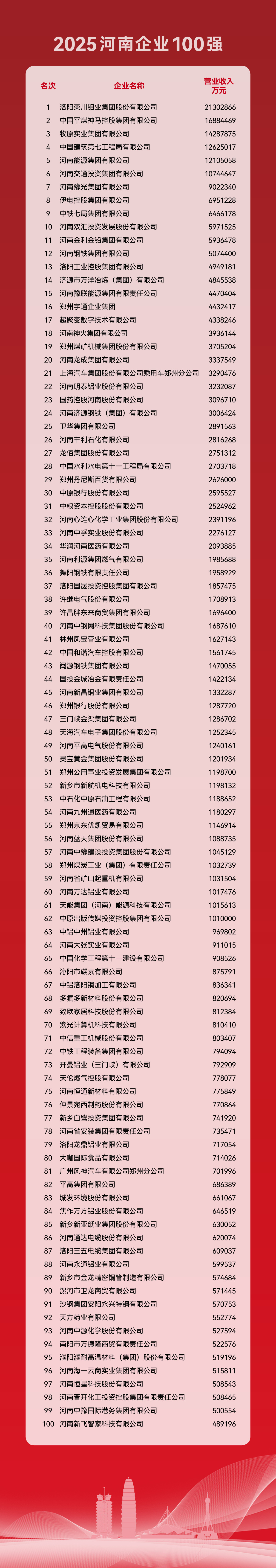 2025年11月12日,一份备受瞩目的河南经济“年度体检报告”在郑州正式出炉。在以“战略引领创新赋能”为主题的“2025河南企业100强发布会”上,新一届的河南百强企业系列榜单正式揭晓。