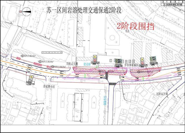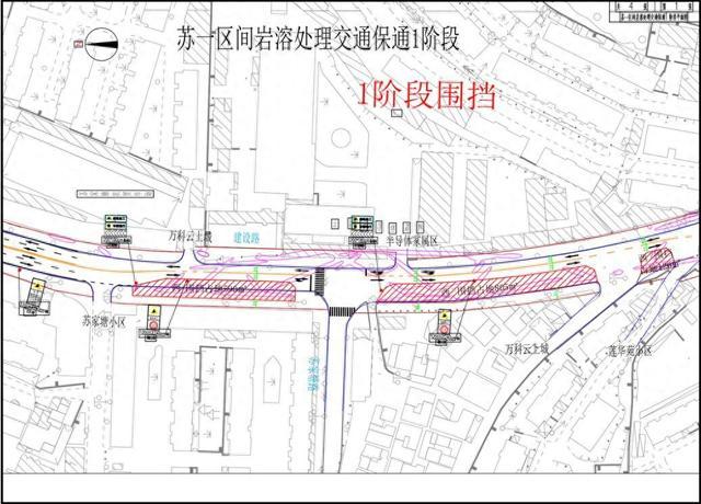 苏一区间岩溶处理施工第一期围挡,将沿建设路东西两侧分段推进、依次交替实施。每阶段岩溶处理施工完成后,将即时拆除对应围挡,减少对交通的持续影响。本次施工各项准备工作已全部就绪,一阶段围挡将于11月13日正式启动,第一期四阶段围挡整体起止时间为2025年11月13日至2026年7月24日。