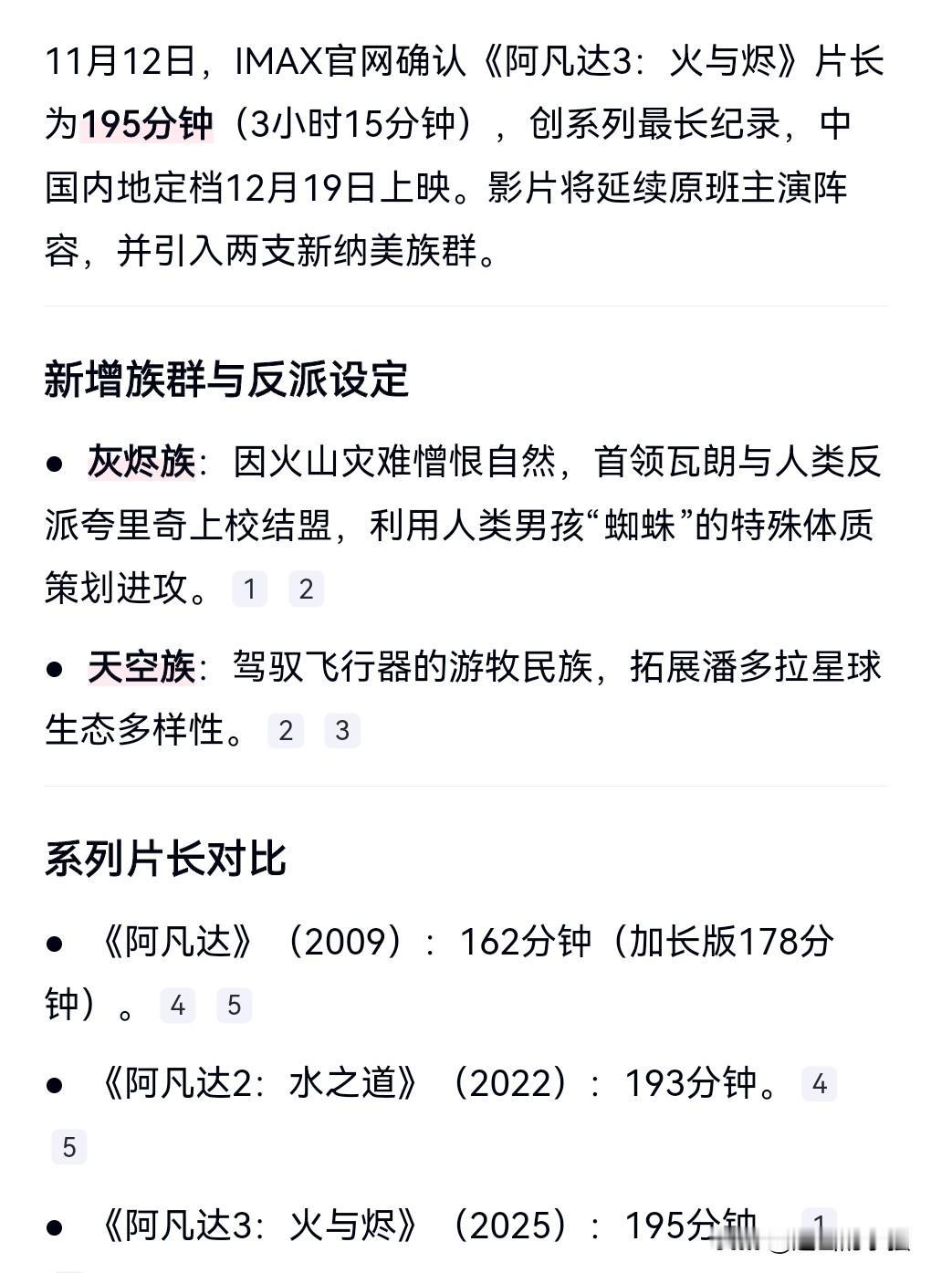 这也太有诚意了吧,阿凡达第3部竟然时间长达195分钟。 破了该系列的纪录。 希望好看一点,不要是又臭又长。 也希望加量不加价,票价不要太高才行。 希望口碑杠杠的,口碑好的话,我肯定会选择看的。 如果口碑一般,那就没必要看了。 将会在12月上映。 期待住了。