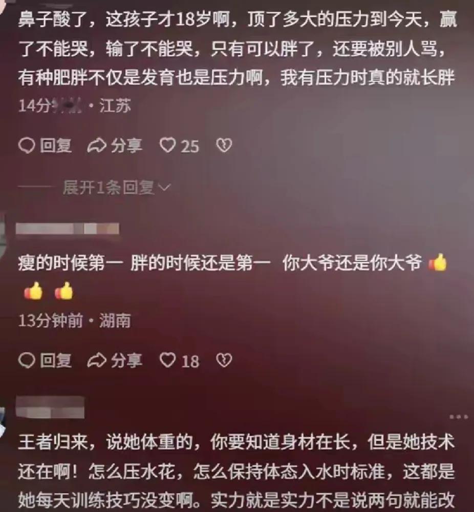全红婵,可能要面临的3个选择:第一, 离开国家队,现在的情况她就算自己不走,也会被铺天盖地的“关注”裹挟得喘不过气——训练被围观、日常被放大、失误被热议,小小年纪就背负着“天才”的枷锁,待得并不轻松。离开后她可以把时间还给自己,好好疗养东京到巴黎周期高强度训练累积的肩背旧伤与腰伤,多回广东老家陪陪常年见不到的父母,和发小们去逛没去过的游乐场,像普通18岁女孩一样,去感受课本外的风、街头的烟火,去拥有一段不被镜头追赶的青春。 第二,暂别职业赛场,专注学业与成长。全红婵的天赋藏在骨子里,但18岁的人生不该只有跳板和水花。如果能趁着这段调整期,走进校园系统学习,补一补被训练挤占的文化课,去接触跳水之外的兴趣——比如她喜欢的美甲、想尝试的绘画,甚至去国外短期交流,看看不同的世界,反而能给心灵松绑。比起在舆论漩涡里硬扛,去一个能让她自由呼吸、被当作“孩子”而非“冠军”对待的环境里沉淀,未必不是对未来的另一种负责。 第三,继续留下,只参加国内赛事。目前确定的重要赛事间隔漫长,下半年的全运会是少数锚点,其余时间多为队内训练。可跳水这项目,手感比技术更磨人——从10米台腾空的瞬间判断、入水时的腰腹控制、甚至脚掌对跳板弹性的感知,都需要高频次比赛的实战打磨。长时间脱离国际赛场的节奏、缺少与顶尖对手的较量,单靠日常训练,很容易陷入“闭门造车”的困境,那些刻在肌肉记忆里的敏锐,难免会慢慢退化。 全红婵会怎么选呢?