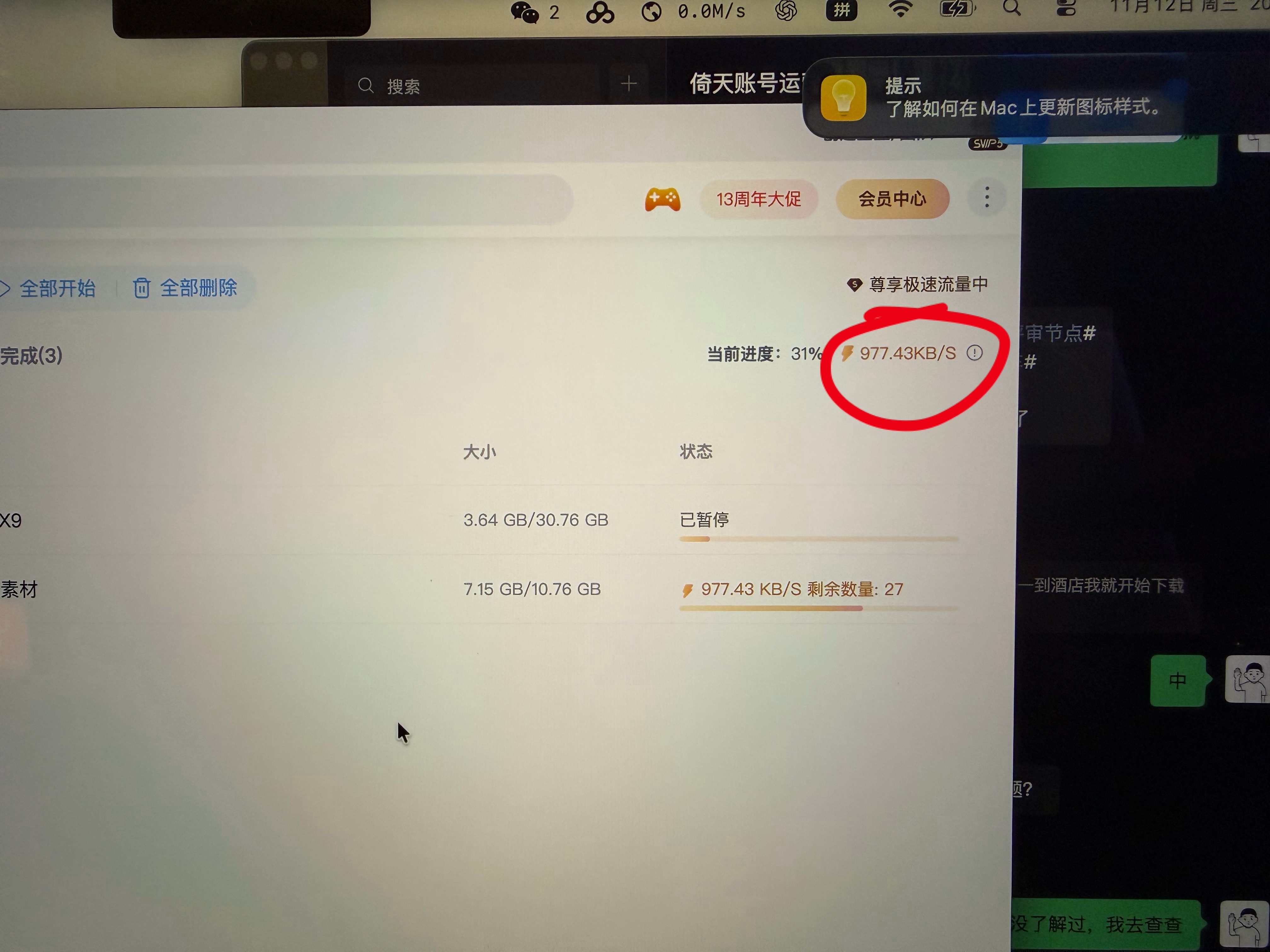 深圳美高梅酒店的网速也太差了,出差因工作需要下载一个素材每秒只有1MB左右的速度