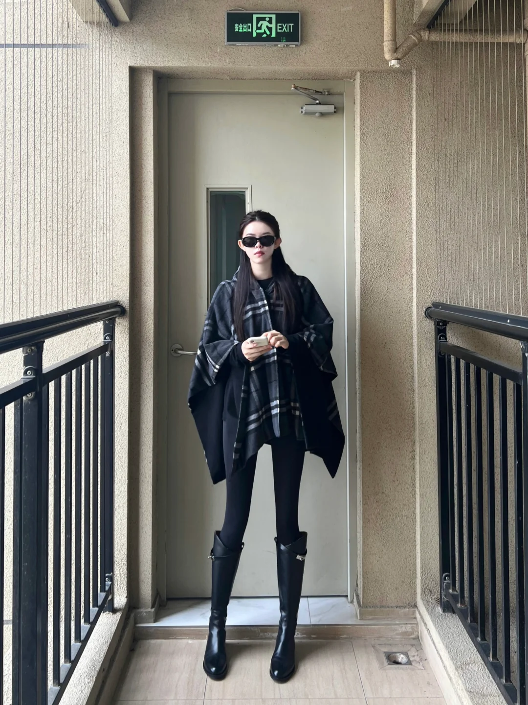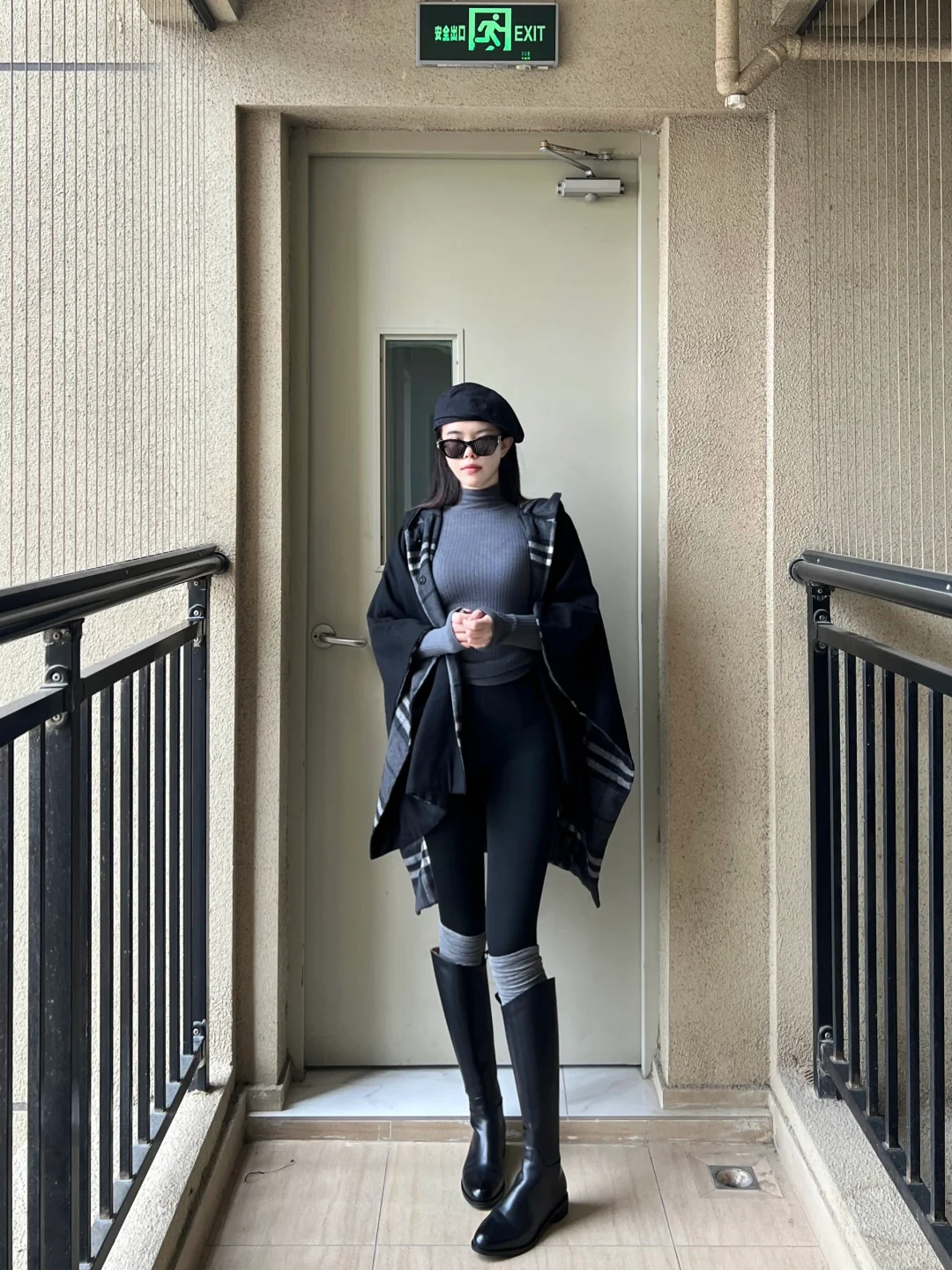 秋冬氛围感 长靴穿搭 斗篷 千金